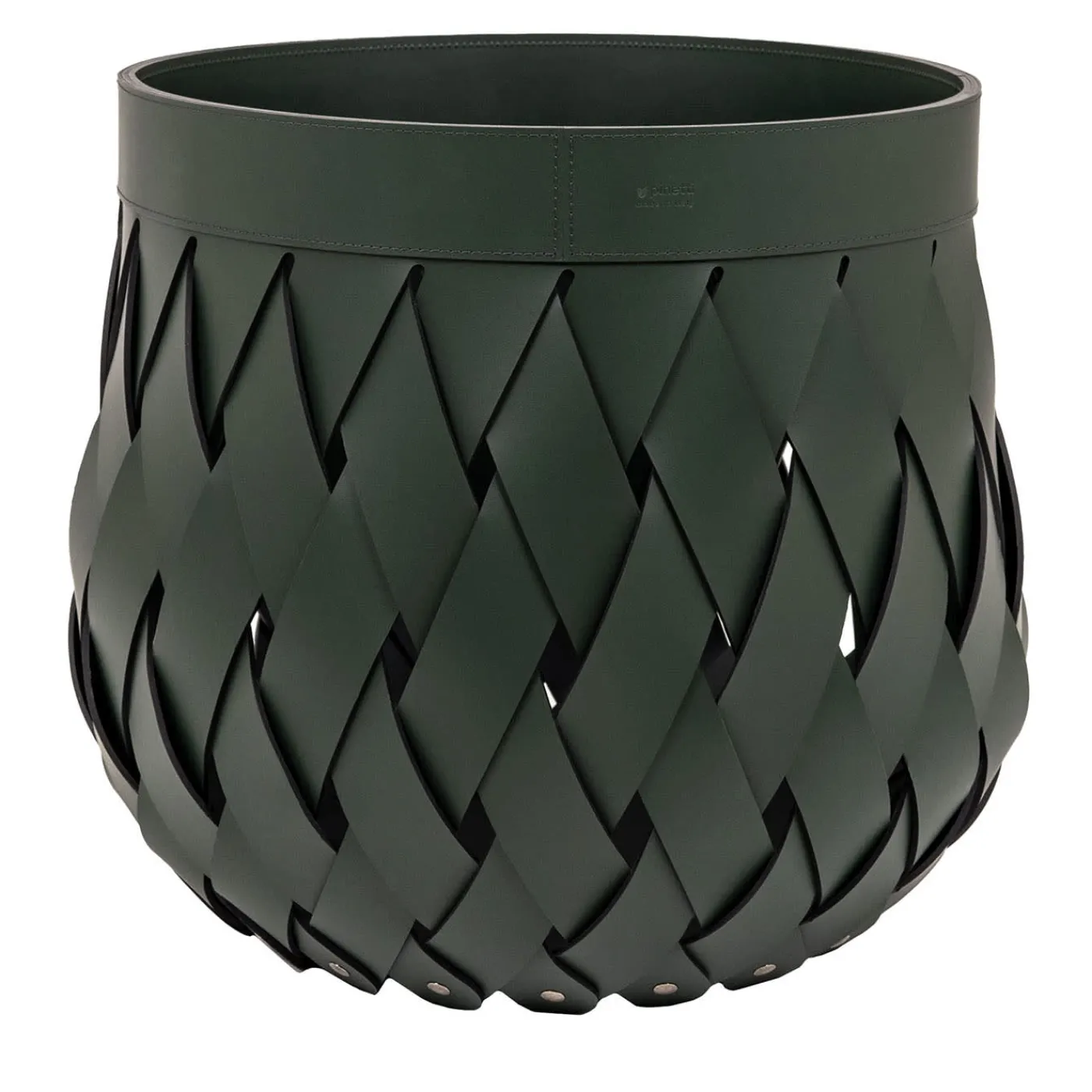 Un meticoloso processo di intreccio manuale è alla base di questo sofisticato cestino in pregiata pelle verde scuro. Caratterizzato da una generosa silhouette rigonfia e realizzato per essere eco-compatibile, lavabile e resistente all’usura, può essere tranquillamente rovesciato all’aperto per raccogliere le scarpe in barca o a lato di una poltrona per raccogliere le riviste. Nel catalogo Artemest sono disponibili diverse dimensioni e colori.
