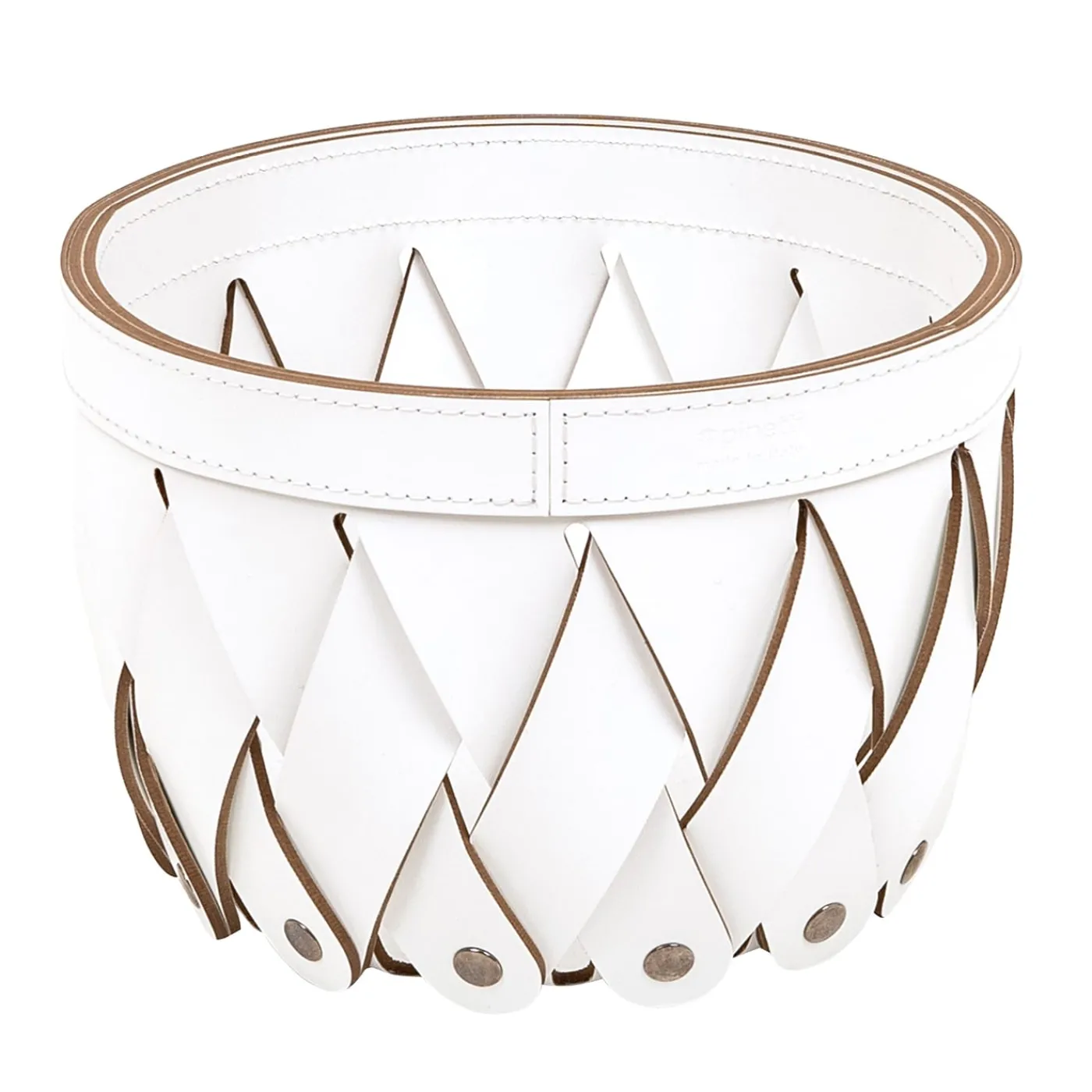 Un accento squisito per qualsiasi tavolo dal fascino contemporaneo, questo cestino bianco a tasche vuote è realizzato a mano in pelle di Antibes intrecciata, adatta per l’uso all’aperto e con chiodi da tappezzeria che ne esaltano il carattere artigianale. Ideale per contenere flaconi di lozione, oggetti personali o frutta, è disponibile in tre diverse dimensioni e in 15 colori. Per ulteriori dettagli, consultare il Concierge.