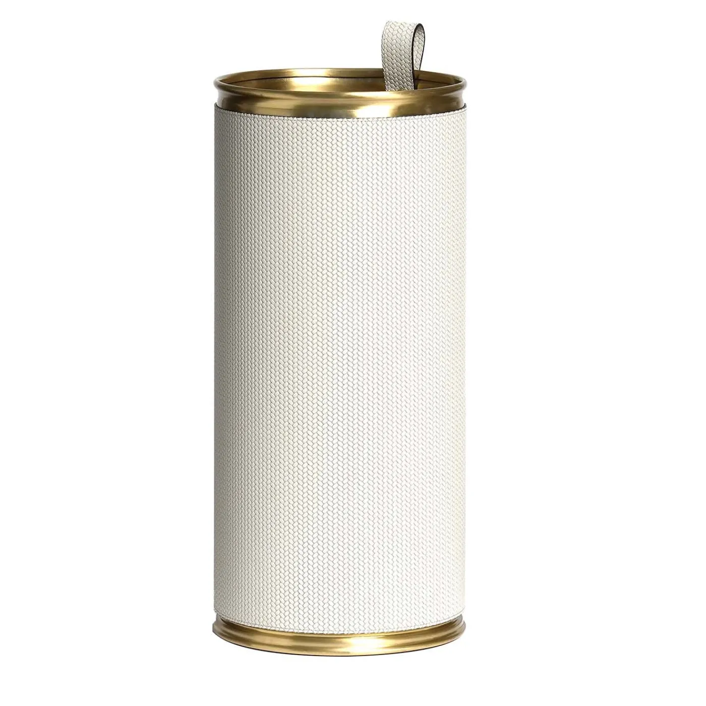 Caratterizzato da un design distintivo e da un uso polivalente, la silhouette architettonica di questo portaombrelli eleva ad arte questo oggetto essenziale per la casa. La forma cilindrica è realizzata in ottone ed è rivestita in pelle bianca; la giustapposizione del corpo lucido con la pelle altamente strutturata esalta l’intrigo visivo del pezzo. Un passante in pelle fissato all’interno del supporto consente di spostarlo facilmente sia da vuoto che da pieno. La pelle e la finitura di questo pezzo sono interamente personalizzabili, si prega di contattare il Concierge.