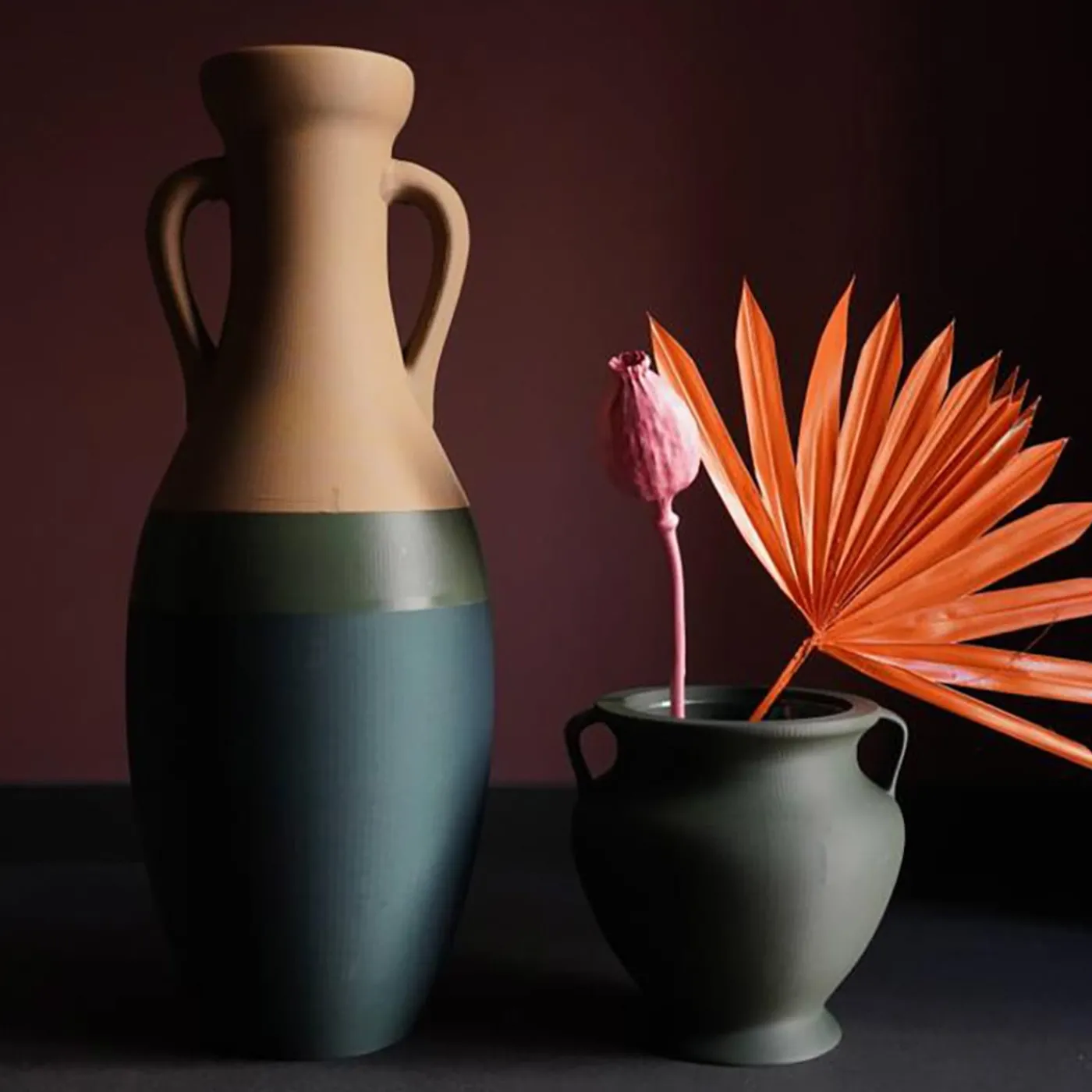 Questo vaso è una reinterpretazione pop della forma archetipica delle anfore romane. L’ispirazione principale per questo oggetto è stato il sito archeologico di Montestaccio studiato da Heinrich Dressel. Il vaso è prodotto con l’uso della stampa 3D e della migliore qualità di PLA (termoplastica derivata da risorse rinnovabili, compostabile in impianti industriali). Questo vaso sostenibile ed elegante è il design perfetto per un ambiente chic.