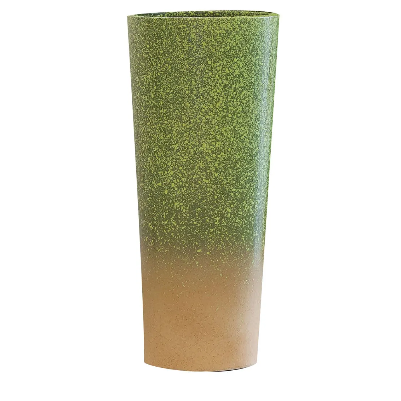 Una silhouette dinamica a forma di V, in gran parte ornata da macchioline che seguono la sfumatura del verde verso il beige, caratterizza questo vaso in ceramica, un pezzo singolare e artistico. Ogni pezzo è interamente unico, sottoposto a essiccazione naturale e a una fase di cottura a +1000° controllata da maestri artigiani. Nel catalogo Artemest è disponibile anche una versione di grandi dimensioni, che suggerisce composizioni coesive.