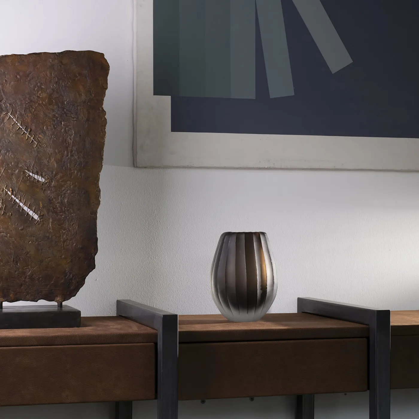 Linae Mini è un vaso di piccole dimensioni disegnato da Federico Peri. La sua caratteristica principale risiede nell’incisione della superficie del vetro. Linee verticali spesse, una forma arrotondata che ne addolcisce il profilo e una solida base in vetro trasparente che sembra lasciar fluttuare il colore all’interno del vaso, fanno di questo piccolo pezzo di arredamento un oggetto di forte carattere. Per ulteriori informazioni, rivolgersi al Concierge.