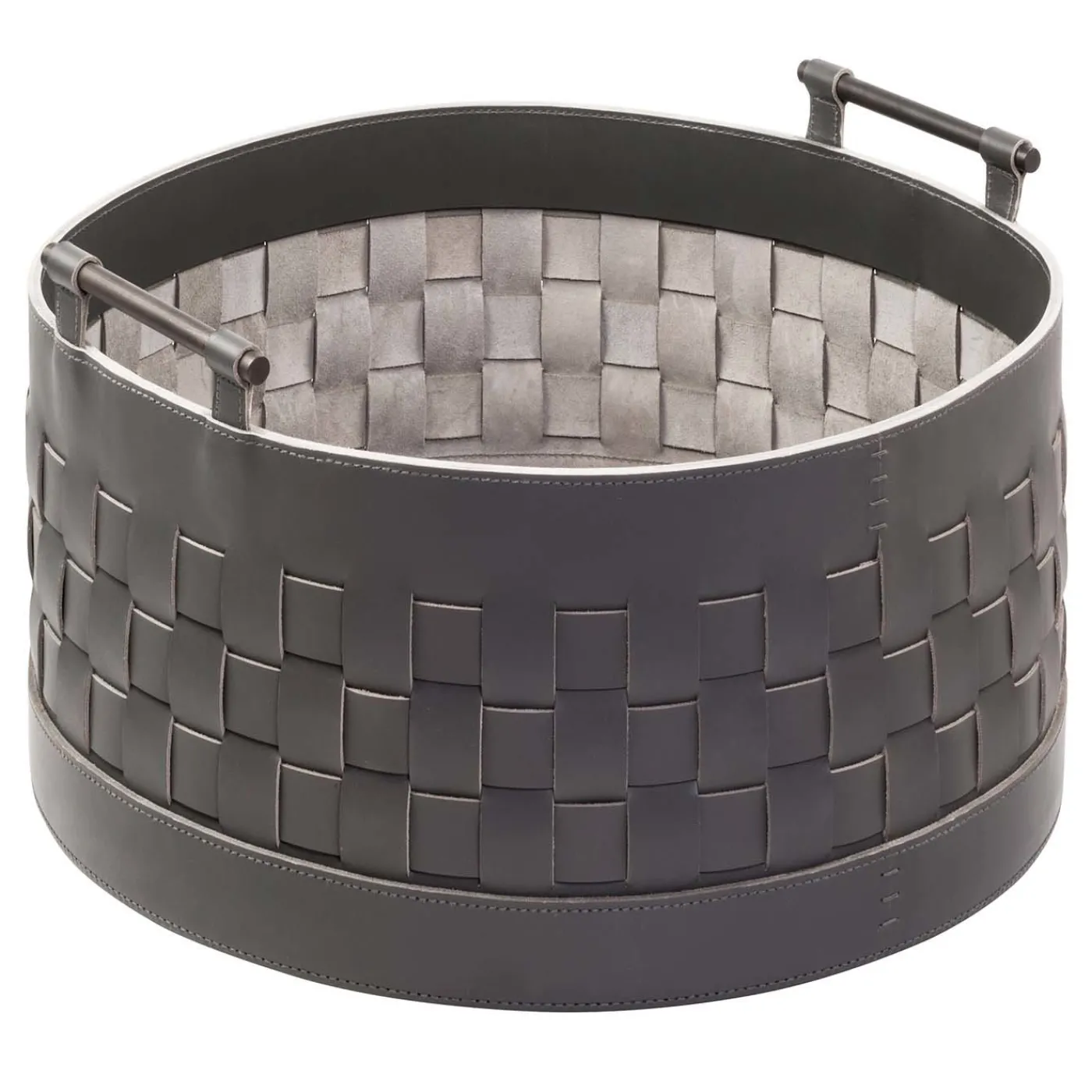 Un superbo oggetto d’arredamento funzionale, questo cestino rotondo fa parte della collezione Ravenna e offre un prezioso spazio di archiviazione, oltre a essere un pezzo di grande effetto da esporre in una casa moderna. In una toilette per contenere gli asciugamani degli ospiti, su un vanity per riporre ordinatamente i prodotti di bellezza o in un soggiorno come elegante portariviste, questo cestino sarà un’aggiunta straordinaria a qualsiasi stanza. La sua struttura rotonda è caratterizzata da maniglie in bronzo spazzolato e da un corpo in pelle di sella resistente all’acqua, intrecciata a strisce tinte con pigmenti vegetali in una sofisticata tonalità di grigio.