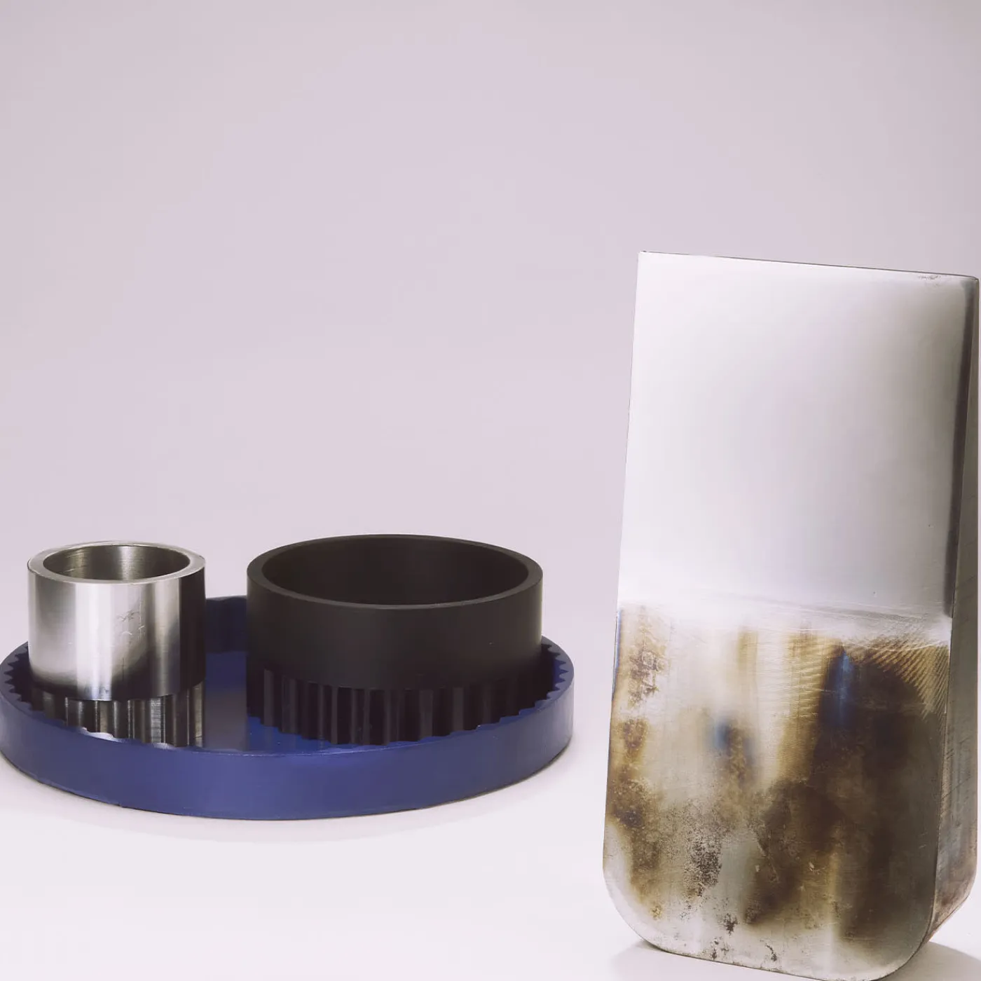 Questo specchio da tavolo nasce dalla ricerca di esplorare le dinamiche visive modellate da forma e consistenza. L’acciaio, elemento centrale della produzione del marchio, si manifesta in due estremi: alla base è solido, pesante e puro, mentre nella parte superiore è lucido, specchiato ed etereo. Nonostante la forma monolitica, che si assottiglia gradualmente nel volume, evoca una dicotomia percettiva che svela il suo scopo e definisce il suo linguaggio unico.