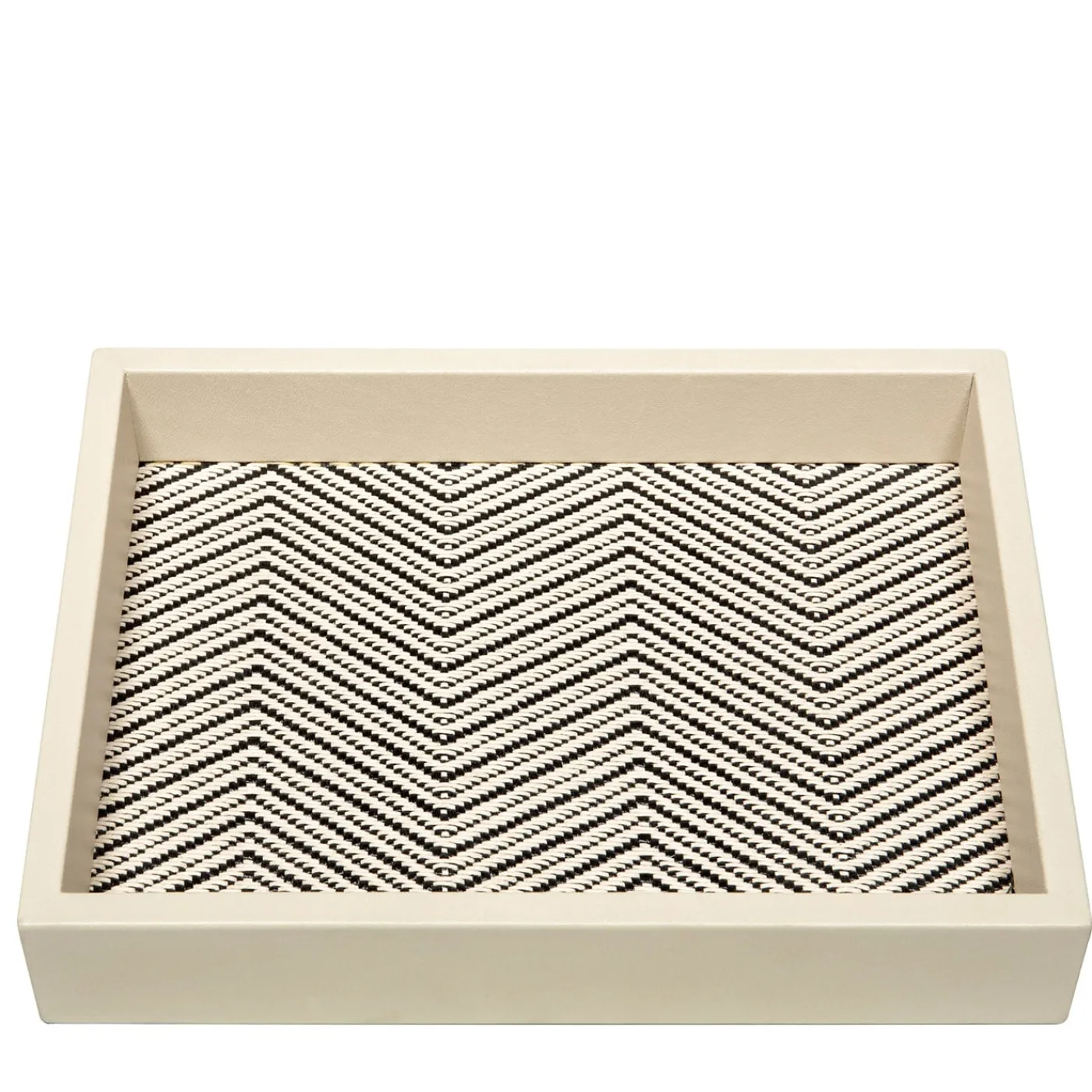 Il vassoio in pelle Febe, con rivestimento in cotone cerato a spina di pesce, è una sintesi perfetta tra estetica e funzionalità. Un oggetto di design capace di conferire all’ambiente circostante stile e personalità.