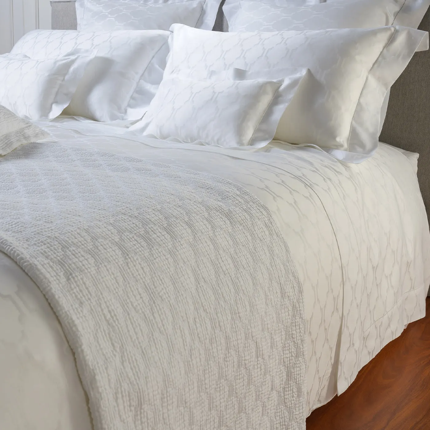 I motivi damascati di fine Ottocento sono reinterpretati in chiave contemporanea in questo raffinato copripiumino matrimoniale. Realizzato in pregiato raso di cotone e dotato di una discreta chiusura a zip nascosta, colpisce per la sottile lucentezza del motivo jacquard e garantisce una durata impareggiabile grazie al titolo di 600 fili. Per le istruzioni di manutenzione, consultare il Concierge.