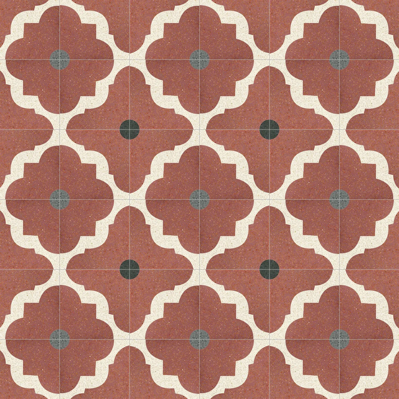 Un perfetto equilibrio di materiali grezzi naturali—compresi cemento, frammenti di marmo e sabbia vulcanica dell’Etna—sapientemente lavorato dagli artigiani del laboratorio di Romano in Sicilia definisce queste sublimi piastrelle in terrazzo, dedicate alla dea greca Artemide. Caratterizzate da un motivo geometrico in sfumature di rosso, bianco perla, grigio e nero, ogni piastrella è meticolosamente decorata a mano con eccezionale cura e abilità artistica. Le piastrelle sono vendute al metro quadrato, con ogni metro quadrato che include 25 piastrelle.