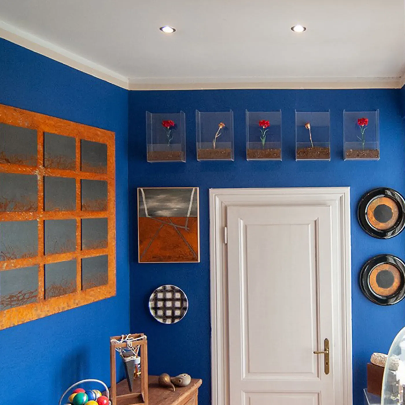 Hypnosis è un’originale opera modulare in ferro e legno disponibile in 4 dimensioni, pensata per arredare ambienti grandi o piccoli. Le cornici sono in legno, mentre l’occhio centrale è una lastra di ferro ossidato, dove l’esclusivo processo di ossidazione rende il ferro di un arancione brillante, offrendo un fantastico contrasto e facendo sì che ogni elemento sia diverso dall’altro.