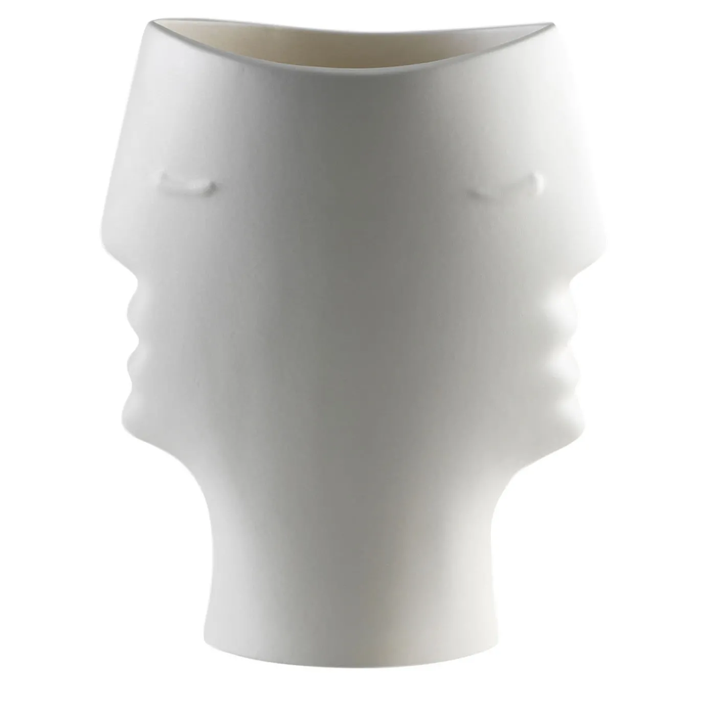 Un pezzo iconico, una firma storica del design italiano. Vaso in argilla bianca, colato a mano, con finitura in smalto bianco opaco. Disegnato da Ambrogio Pozzi.