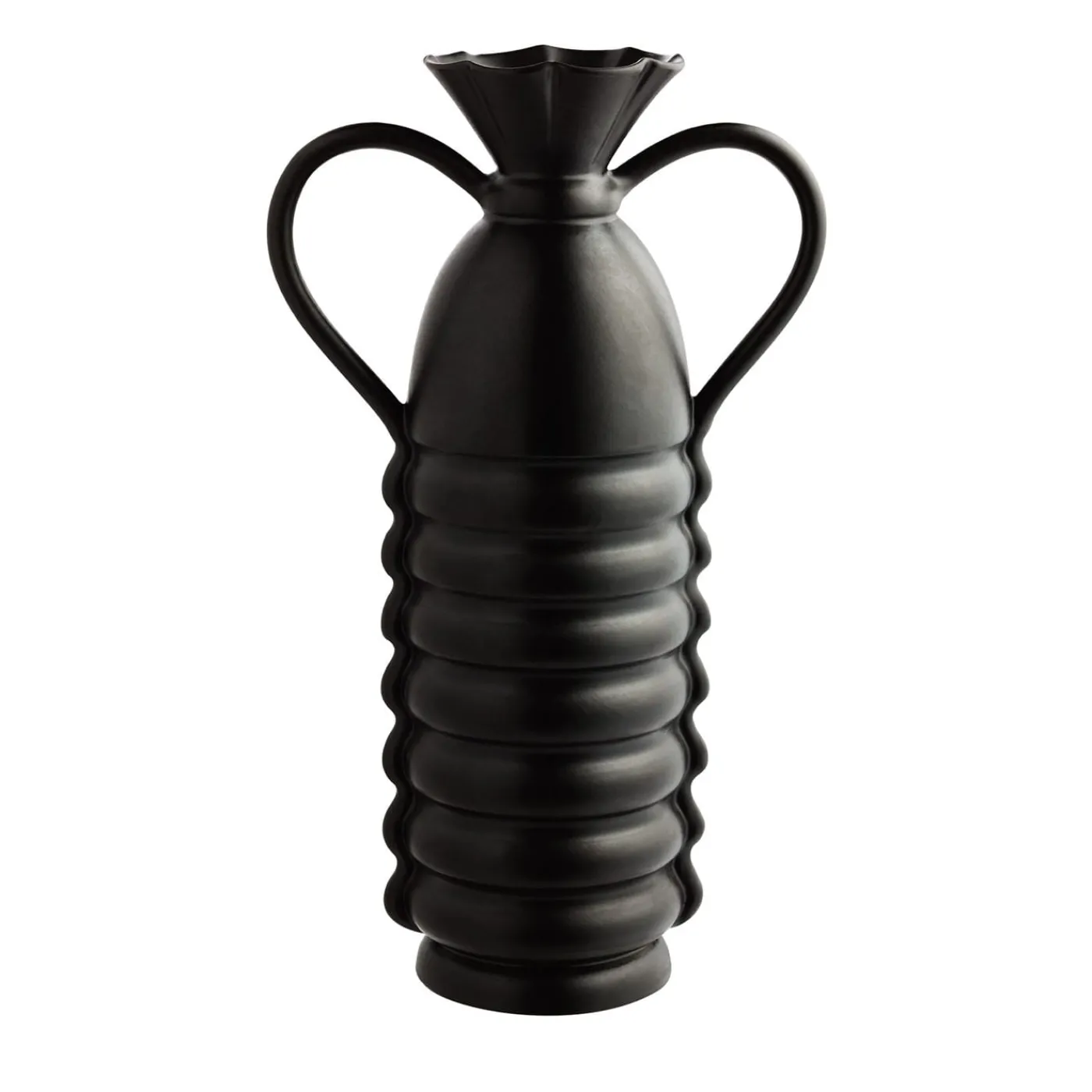 Per questo vaso, i classici smalti di terracotta danzano in una sensuale coreografia di ripetizioni ritmiche, dove il fascino dell’inaspettato prende forma. Vaso artigianale in terracotta con manici in argilla, rifinito con uno smalto nero opaco. Disegnato da Ugo La Pietra, il vaso Continuous unisce l’artigianato senza tempo all’eleganza contemporanea.