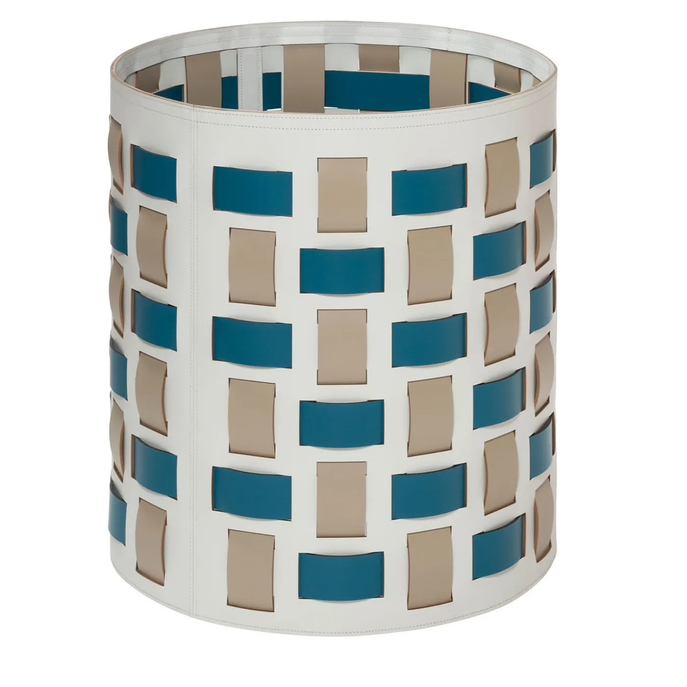 Il design dei cesti Lisbona nasce dalla variazione di un intreccio classico con fasce verticali e orizzontali in cui si crea un effetto mosaico. La superficie che fa da cornice alle fasce acquista importanza e, da semplice sfondo, diventa un elemento decorativo in grado di valorizzare l’intreccio e il suo design. Struttura in finissima pelle rigenerata rinforzata con finitura resistente all’acqua e ai raggi UV. Ideale per biancheria, asciugamani, riviste o oggetti di uso quotidiano. Adatto per uso interno ed esterno.