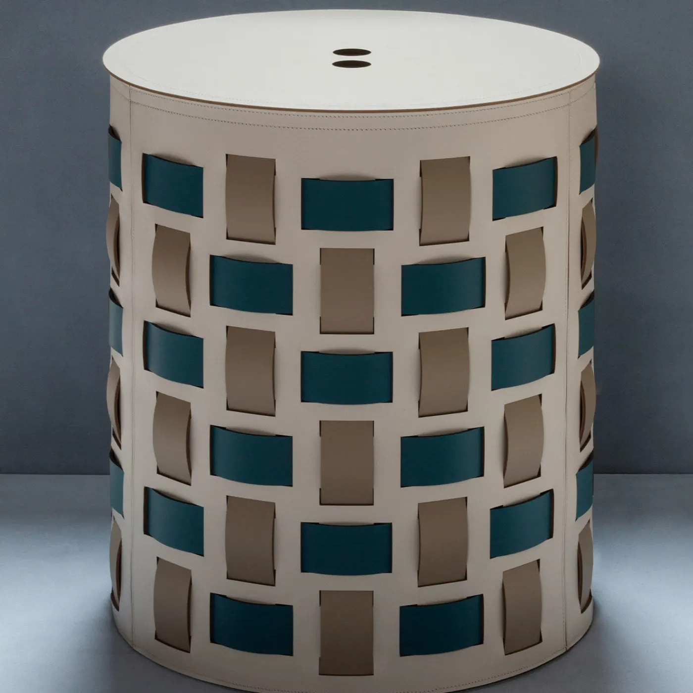 Il design dei cesti Lisbona nasce dalla variazione di un intreccio classico con fasce verticali e orizzontali in cui si crea un effetto mosaico. La superficie che fa da cornice alle fasce acquista importanza e, da semplice sfondo, diventa un elemento decorativo in grado di valorizzare l’intreccio e il suo design. Struttura in finissima pelle rigenerata rinforzata con finitura resistente all’acqua e ai raggi UV. Ideale per biancheria, asciugamani, riviste o oggetti di uso quotidiano. Adatto per uso interno ed esterno.