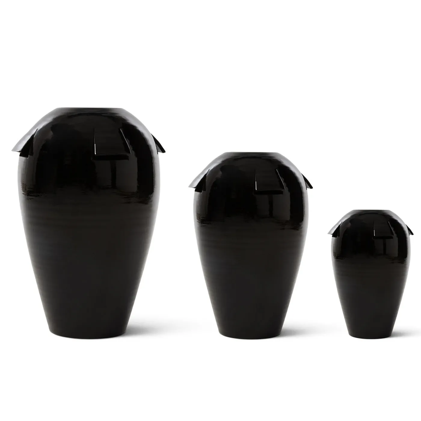 Discrete fessure – che simboleggiano finestre che consentono l’accesso a una divinità creativa condannata a piangere per sempre per il suo peccato di hybris – caratterizzano questo singolare vaso in ceramica come un pezzo di fascino poetico. Caratterizzato da una superficie sottilmente ondulata e smaltata di nero, il vaso emana una personalità davvero intrigante. Disponibile anche nelle versioni da 60 cm e 90 cm. Contattare il Concierge per maggiori dettagli.