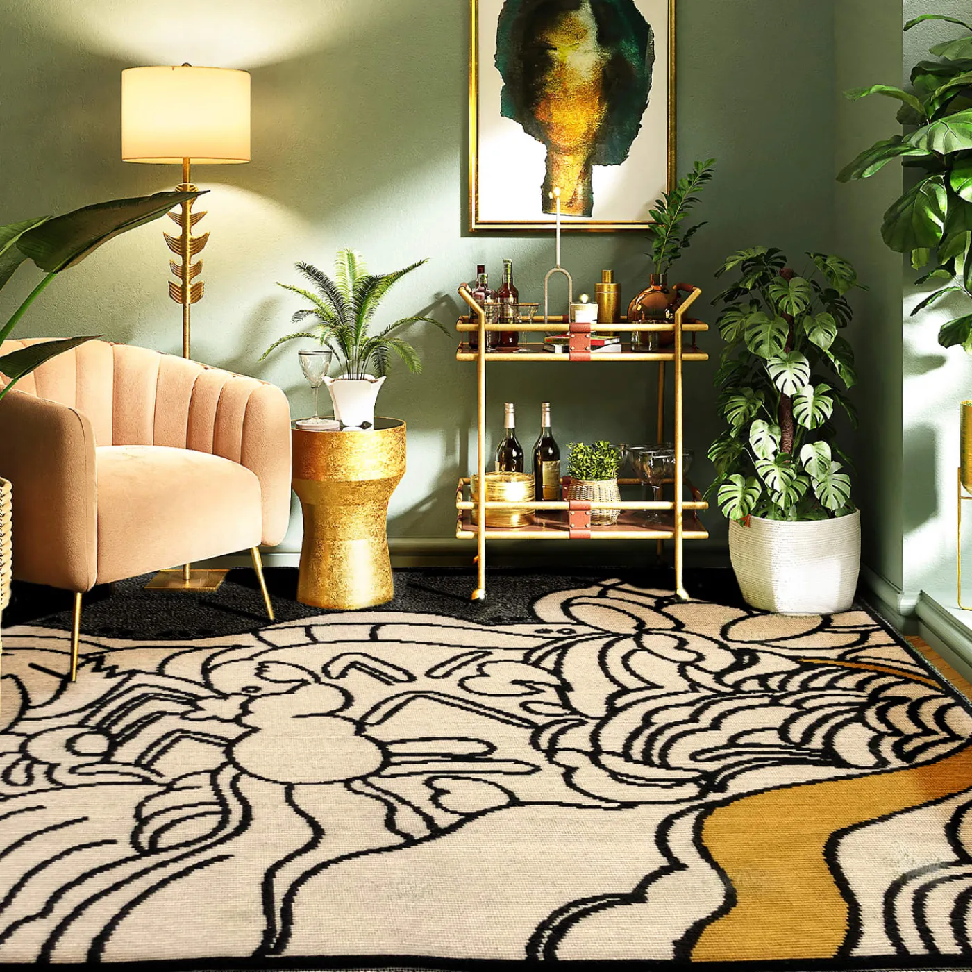 Ispirato al dipinto “Ciurana, Il Sentiero” del celebre pittore Joan Miro, questo tappeto vanta un’intrigante trama tessuta a mano composta da punti a grappolo d’uva tipici dell’antica tecnica sarda dei “pipiones”. Una combinazione di beige, nero e melange con un tocco di senape definisce la sua tavolozza, contribuendo a sigillare il disegno.