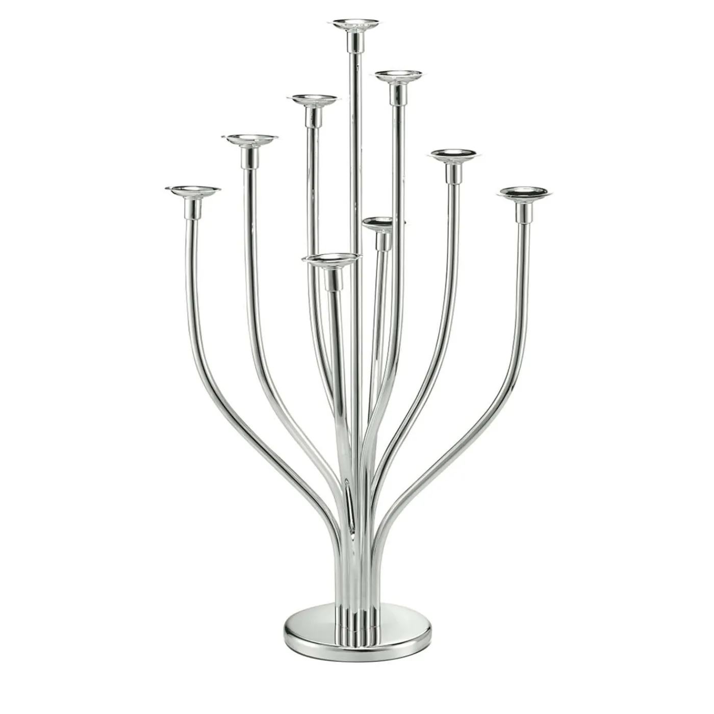 Come i rami di un albero, questo portacandele argentato presenta nove bracci che si estendono a diverse altezze dalla base rotonda in una silhouette dinamica e seducente. Moderna ed elegante, la superficie scintillante dell’argento riflette la luce creando un’illuminazione d’ambiente durante le occasioni formali e festive. Apprezzatissimo regalo di nozze o di inaugurazione, questo portacandele può essere personalizzato con l’incisione di un monogramma o di uno stemma ed è disponibile anche con placcatura in oro parziale o totale.