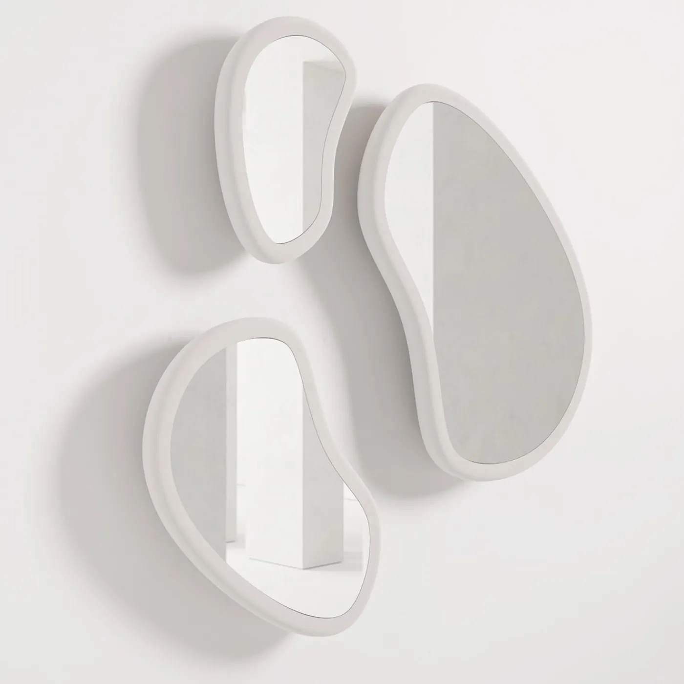 Gli specchi Laghi di Artefatto sono caratterizzati da un caratteristico mix di curve interne ed esterne. Presentano un design artistico con finitura in legno laccato bianco opaco e specchio extra chiaro. Su richiesta, sono personalizzabili in diversi colori e finiture che valorizzano qualsiasi spazio interno con eleganza e individualità. Dimensioni Laghi S: 16Lx5Dx25H cm, Laghi M: 23Lx5Dx35H cm, Laghi L: 30Lx5Dx44H cm.