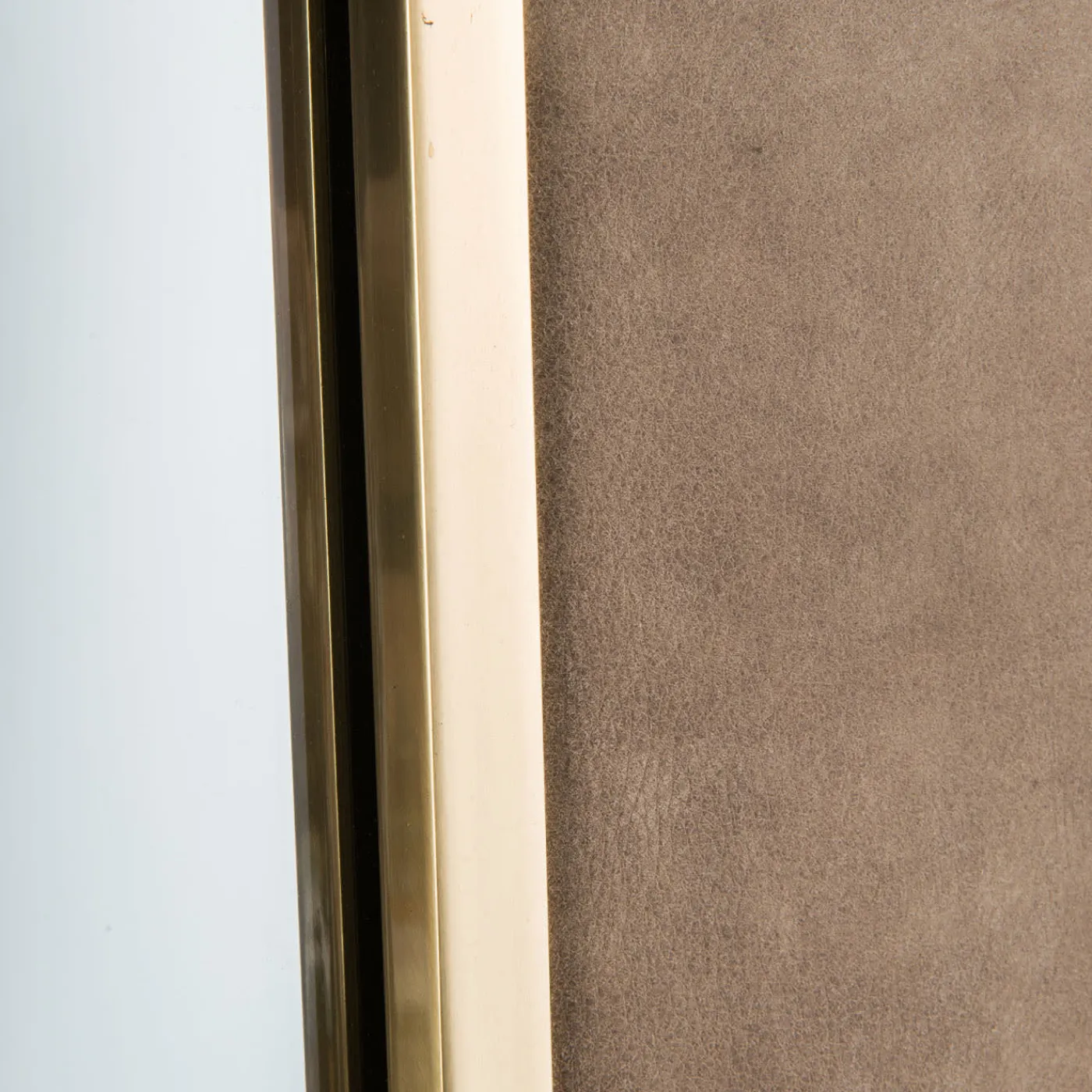 Lo specchio è realizzato in pelle di alta qualità e aggiunge un tocco di lusso e raffinatezza a qualsiasi spazio. La pelle è stata accuratamente selezionata per la sua consistenza e durata. Una cornice di ottone lucido circonda lo specchio, offrendo un contrasto classico ed elegante con il materiale naturale. Questo specchio è un’aggiunta bella e funzionale a qualsiasi casa.
