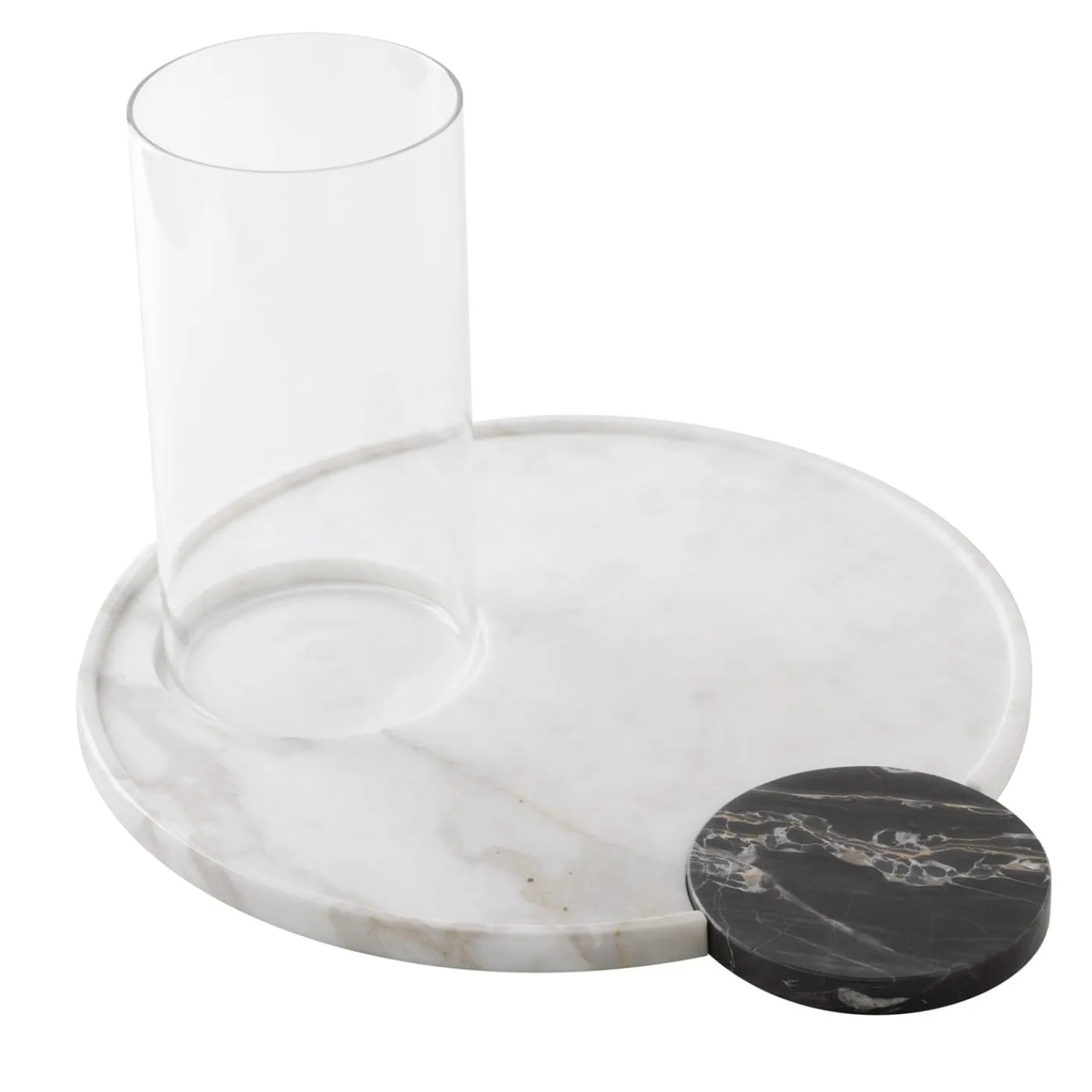 Cerchi-amo è composto da due pezzi che possono essere complementari o utilizzati separatamente. Il set è composto da un cerchio grande in marmo bianco Lasa e da un cerchio piccolo in marmo nero Portoro. I vassoi in marmo Cerchi-amo di SlowDesign44 sono realizzati a mano con passione e cura da maestri artigiani. Il set è completato dal bicchiere trasparente Easy 06 e dal vaso Easy 01; si tratta di un vetro borosilicato, un materiale molto resistente e privo di impurità. Chiedete al Concierge i dettagli della personalizzazione.