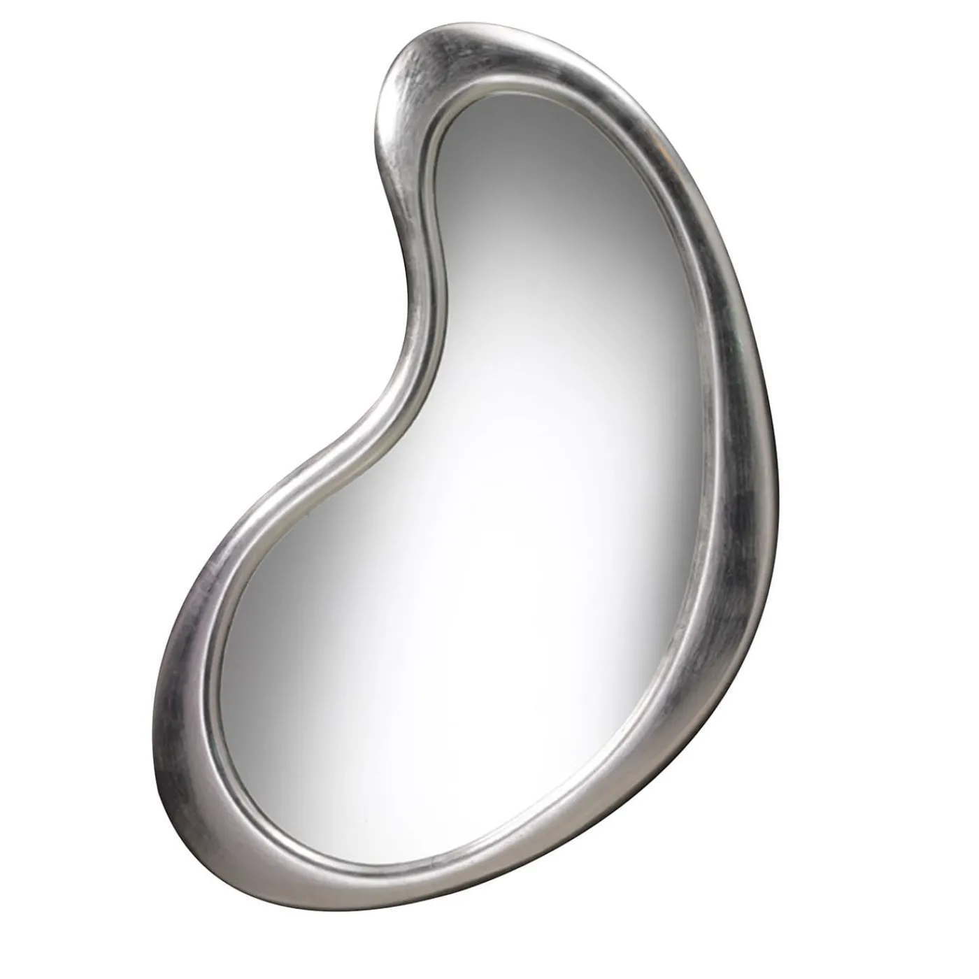 Profili sinuosi che tracciano i contorni di una silhouette fluida e accattivante definiscono questo elegante specchio da parete di inconfondibile ispirazione contemporanea. Realizzato in MDF, il telaio è nobilitato da un lussuoso rivestimento in foglia d’argento che produce una lucentezza ipnotica. Glamour e scultoreo, questo pezzo è ideale da collocare in sofisticati ingressi o camere da letto.