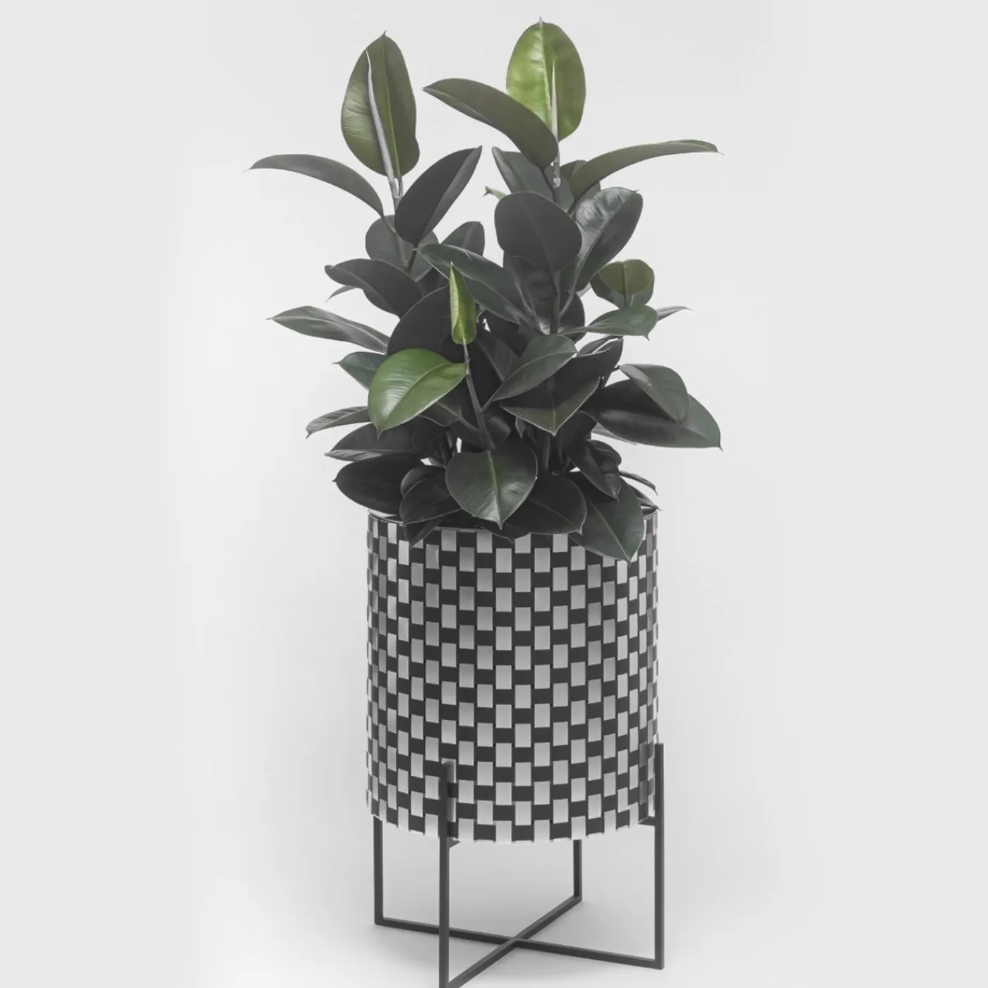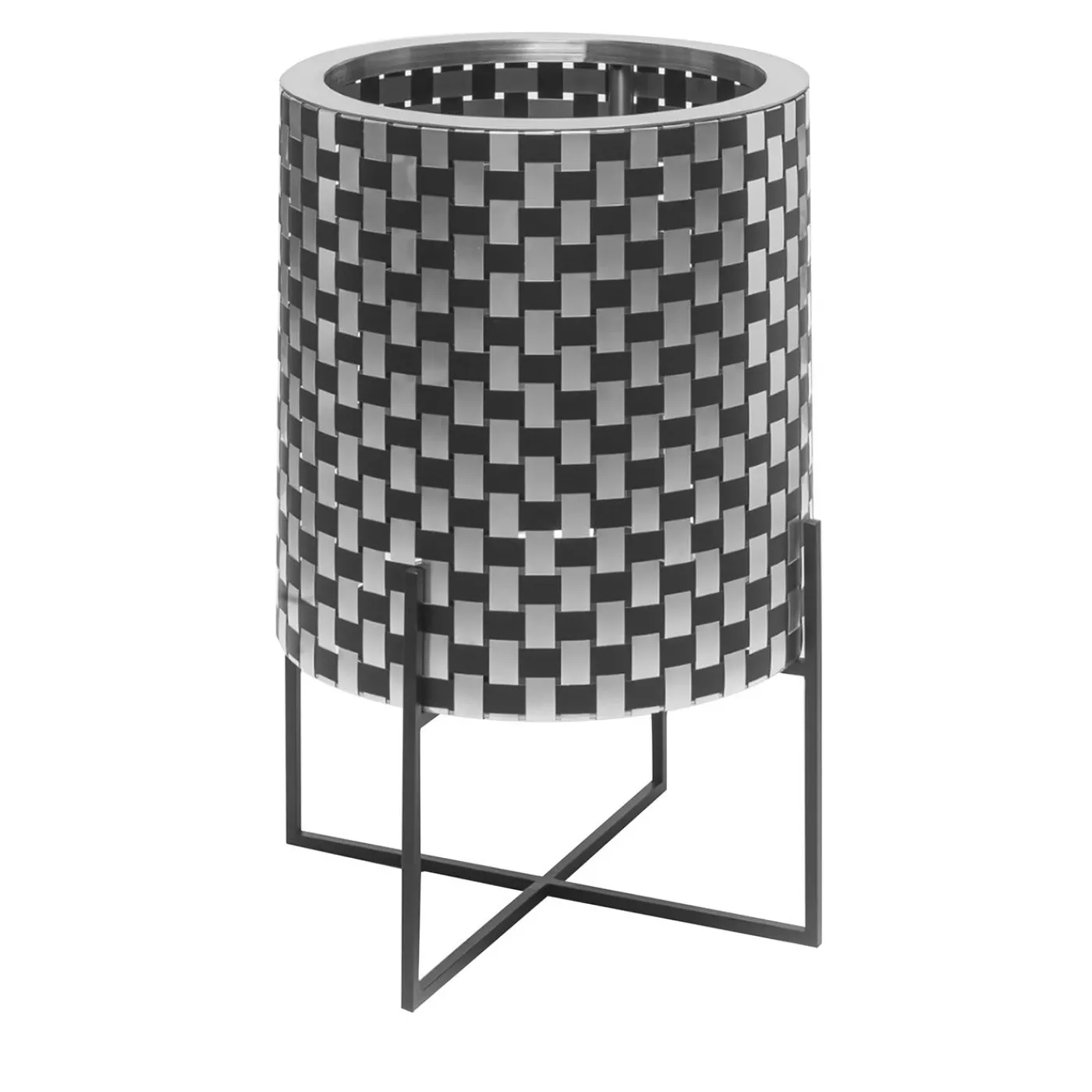 Questo sofisticato cachepot è caratterizzato da un esclusivo materiale in alluminio intrecciato a mano, chiamato Splot, creato in esclusiva da Inthegarden Design Studio. Il cachepot presenta una base incrociata in ferro verniciato nero – che eleva il portavaso cilindrico di circa 10 cm da terra – e un portavaso cilindrico con una struttura interna in acciaio e un esterno ottico e intrecciato realizzato con fogli di alluminio neri e naturali alternati. Disponibile in tre diverse dimensioni e finiture, si prega di contattare il Concierge per i dettagli.