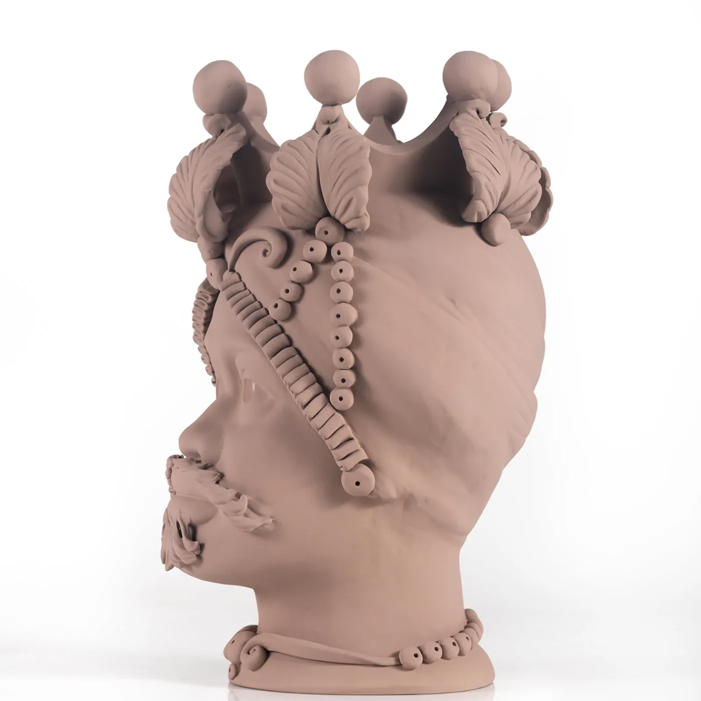 Questa splendida gamma di vasi è interamente realizzata a mano come da tradizione siciliana e si ispira alla mitologia greca. In questo esempio, il vaso Ade è caratterizzato da una finitura beige salmone opaco e rappresenta un’aggiunta creativa ed elegante a qualsiasi ambiente esterno o area della casa in cui fiori o piante completano l’arredamento. Il vaso non può essere riempito d’acqua.