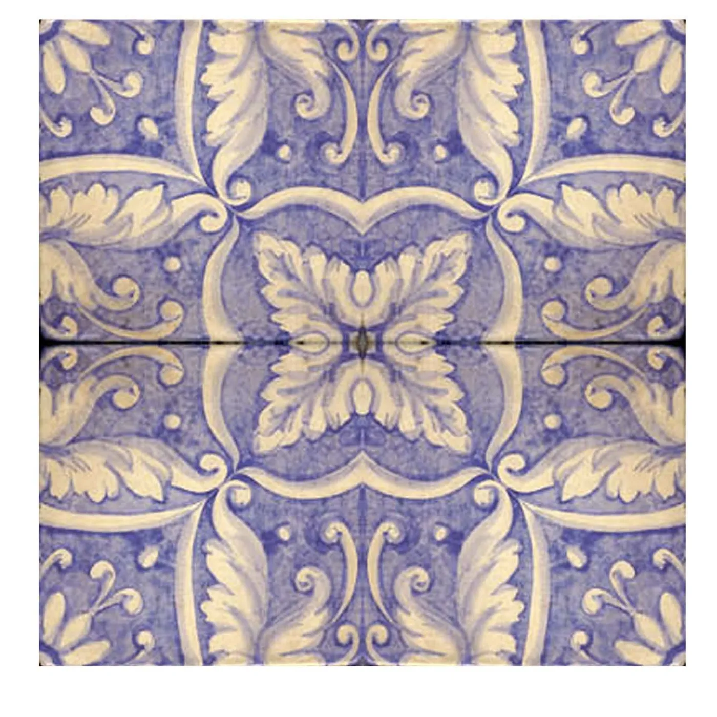 Realizzate a mano secondo l’antica tradizione delle maioliche siciliane, queste quattro piastrelle si fondono per rivelare un disegno straordinariamente ornato che ricorda la grandezza del tardo Rinascimento. Le quattro piastrelle si uniscono per creare un disegno simmetrico con motivi color avorio su un elegante sfondo lilla. Delicate volute incorniciano le fronde, creando una sottile giustapposizione di forme che completa il disegno. L’abile uso di colori, forme e forme crea un’estetica accattivante che si presta al meglio come pannello da parete in cucina, sala da pranzo, ingresso o patio.