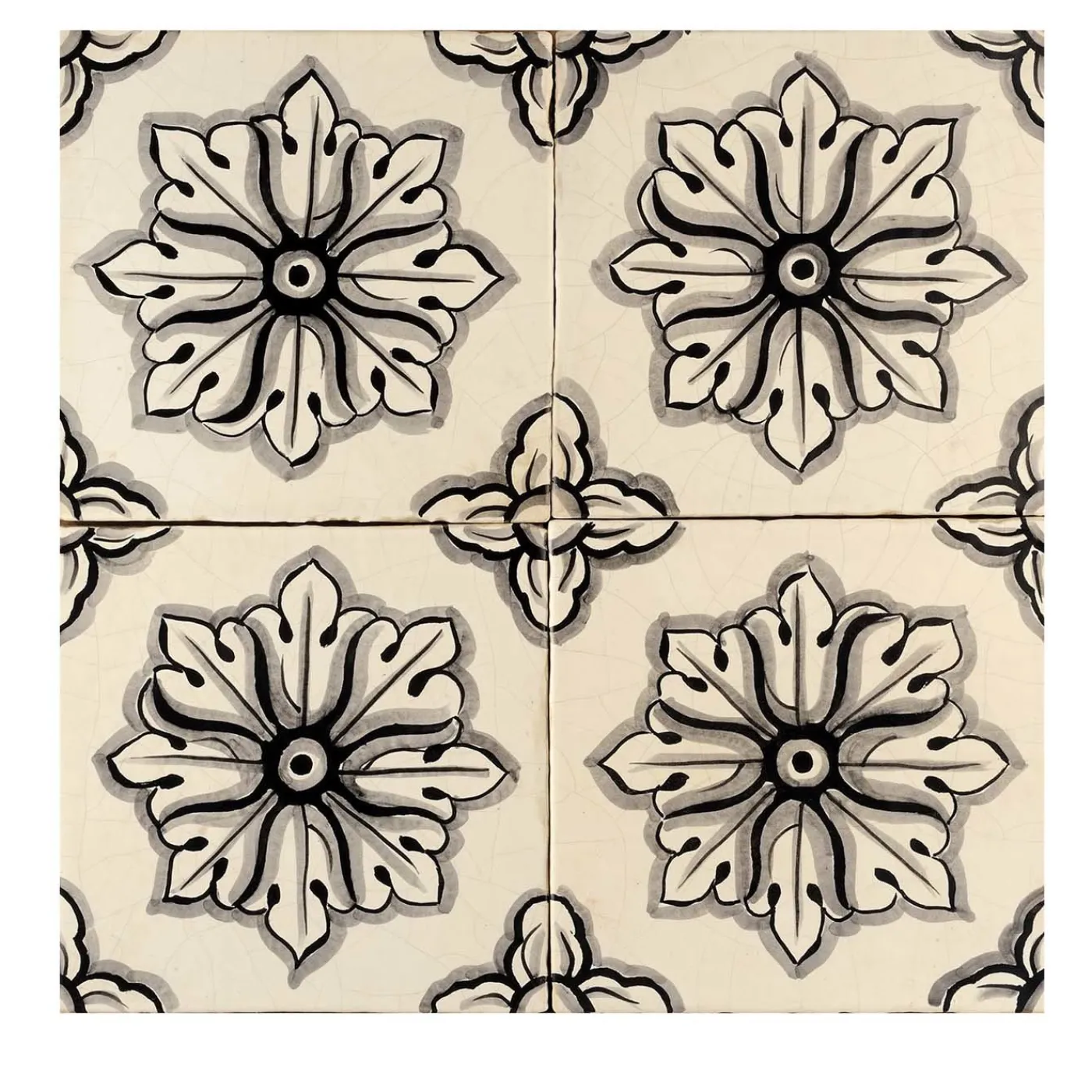Interamente realizzate a mano secondo le antiche tradizioni ceramiche siciliane, queste maioliche hanno un aspetto rustico e moderno che completerà qualsiasi arredamento. Realizzata in terracotta e pietra vulcanica, questa piastrella vanta un design a specchio con audaci motivi a fronde meticolosamente dettagliati in smalto nero e incastonati su uno sfondo avorio per un’estetica di grande impatto. Smaltate a mano per una finitura opaca, queste piastrelle devono essere applicate senza stuccatura per garantire la continuità del design.