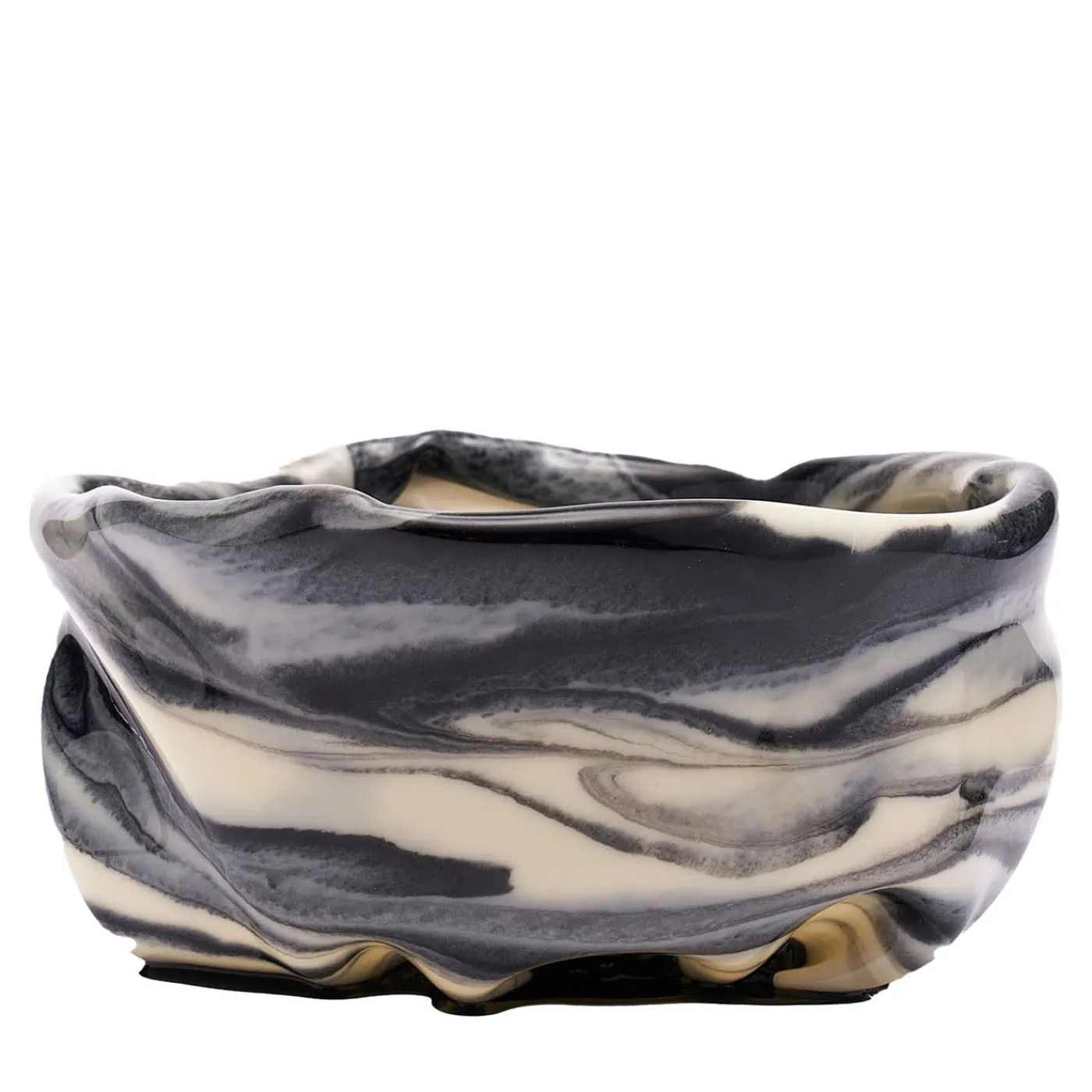 Progettato pensando ai drappeggi degli abiti indossati nell’antica Grecia, questo centrotavola color marmo è un singolare accessorio in resina fatto a mano che sintetizza senza soluzione di continuità lo spirito della Pop Art e l’estro tattile. Ombre e luci interagiscono in una danza accattivante che colpisce a ogni sguardo insieme all’estrema fluidità del suo design intensamente plissettato.
