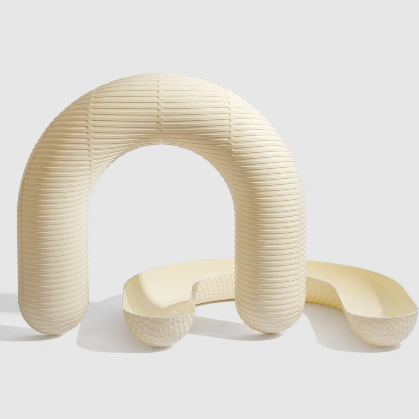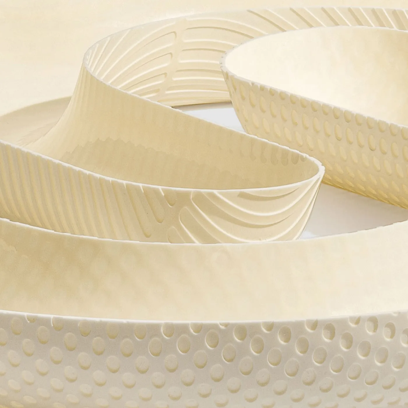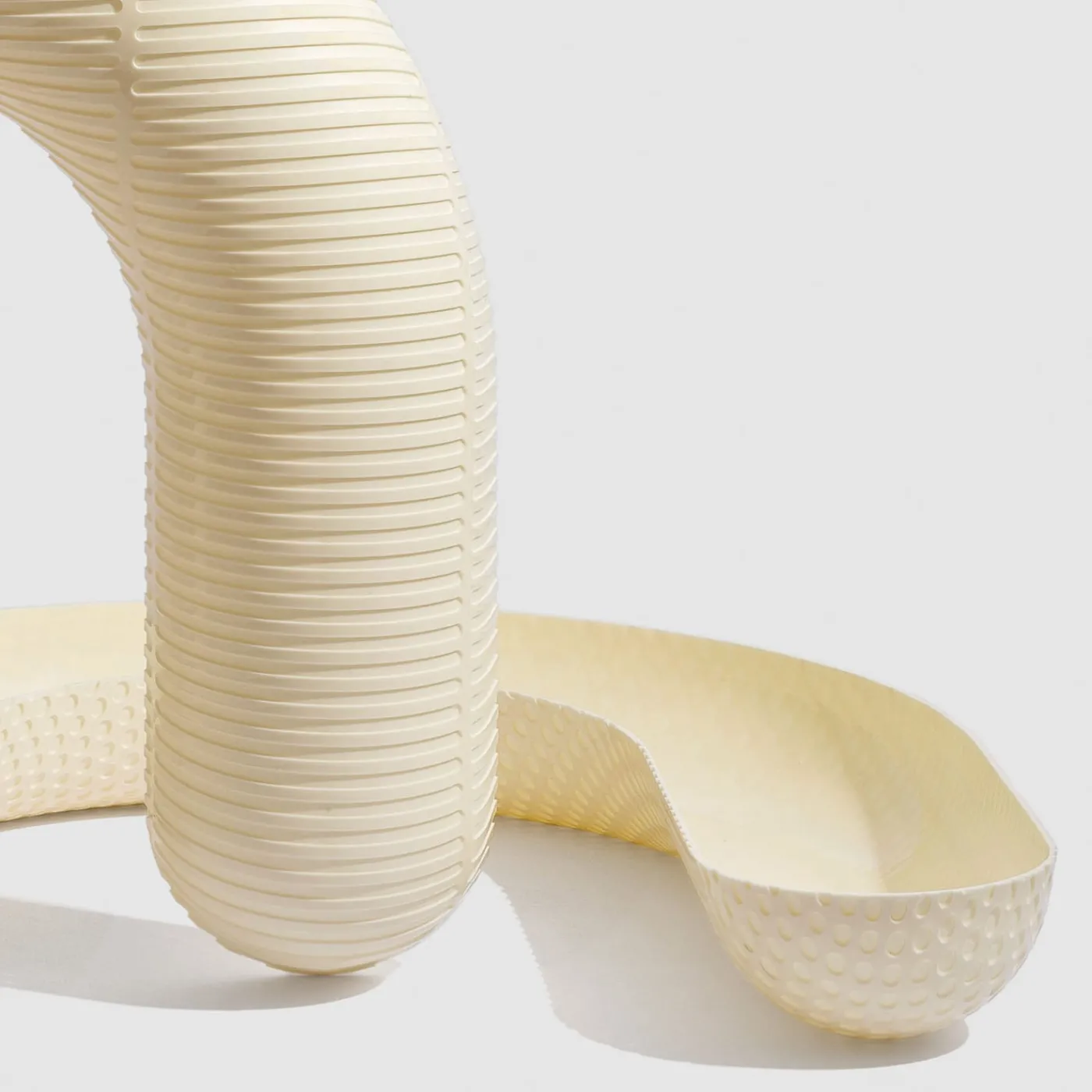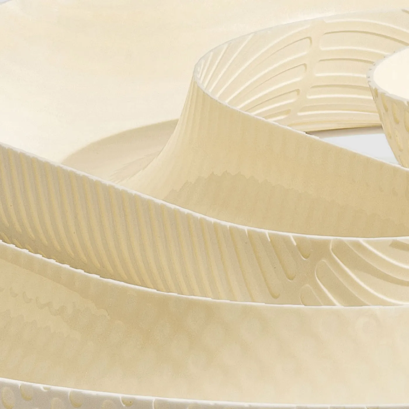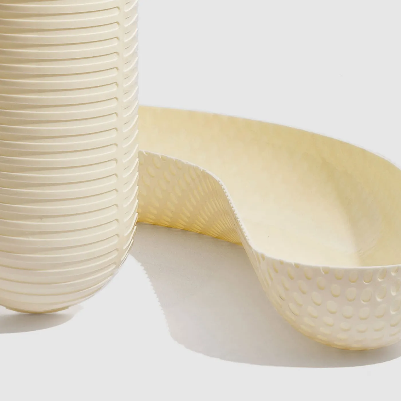 Ispirato al design di Ugo La Pietra. Una forma semplice, caratterizzata da due tratti distintivi: una linea e un punto, che generano una coppia di decorazioni per la tavola, simili ma uniche. Il prodotto finito ricorda le forme sinuose e ricorrenti tanto in voga in quegli anni, dove la presenza di un disturbo casuale si sovrappone e deforma la struttura percettiva dell’oggetto. Una distorsione pragmatica che avviene grazie a effetti di sovrapposizione degli oggetti e a sapienti accostamenti, creando infinite combinazioni.