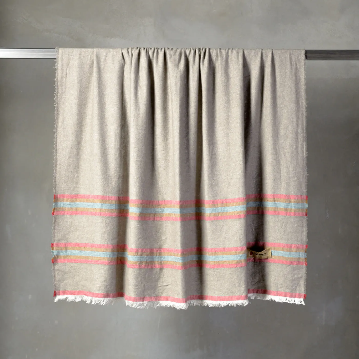 Tranquilla nei suoi dettagli lineari quanto frizzante nelle sue scelte cromatiche, questa coperta è una soluzione perfetta per accentuare gli arredi dai toni neutri con un tocco di colore. Il sapiente mix di lino e cachemire le conferisce una morbidezza e una freschezza sorprendenti, anticipando la piacevolezza del suo abbraccio.