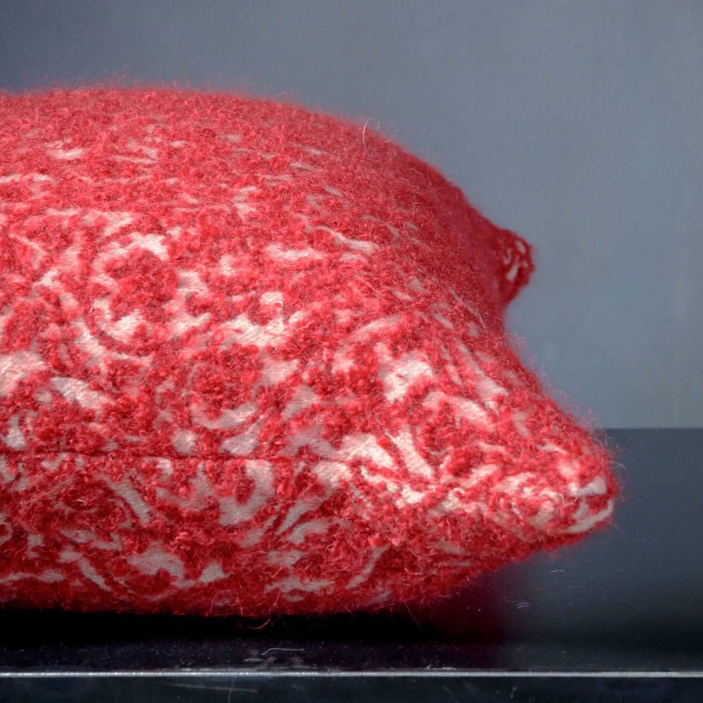 Per la realizzazione di questo morbidissimo cuscino è stata scelta un’esclusiva miscela di lana Mohair e lana normale. Proposto in una vivace tonalità di rosso, il motivo floreale emerge ordinatamente dallo sfondo bianco e seduce con la qualità tattile del suo design boucle. Romantico e raffinato, è un’aggiunta perfetta ai set di cuscini colorati.