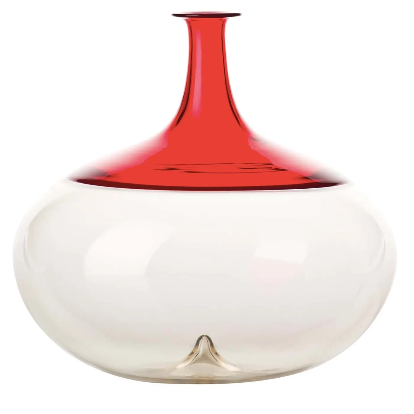 Disegnato originariamente nel 1966 dal designer finlandese Tapio Wirkkala, questo vaso è caratterizzato da una forma arrotondata e da una finitura bicolore. Il vetro soffiato a bocca è realizzato a mano con la tecnica dell'”incalmo”, che fonde i componenti di vetro colorato in un unico pezzo. Il design altamente grafico con colori contrastanti crea una forte presenza ottica di grande qualità estetica.