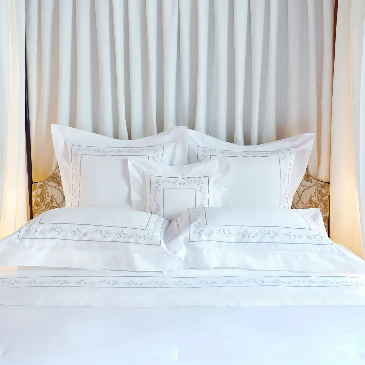 Un design che non sbiadisce e non passa di moda. Per chi sogna di passare le notti crogiolandosi nella bellezza. I suoi fili unici sono costituiti da fibre lunghe e finissime, intrecciate in un prodotto finito nitido ma estremamente morbido. Le lenzuola Verderoccia sono fatte per immergersi, dormire è facoltativo. Un ricamo d’autore sul nuovo percalle Estremo, prodotto in Italia. Ogni articolo è realizzato su misura dagli artigiani Verderoccia e sarà spedito entro un mese. Personalizzabile su richiesta.