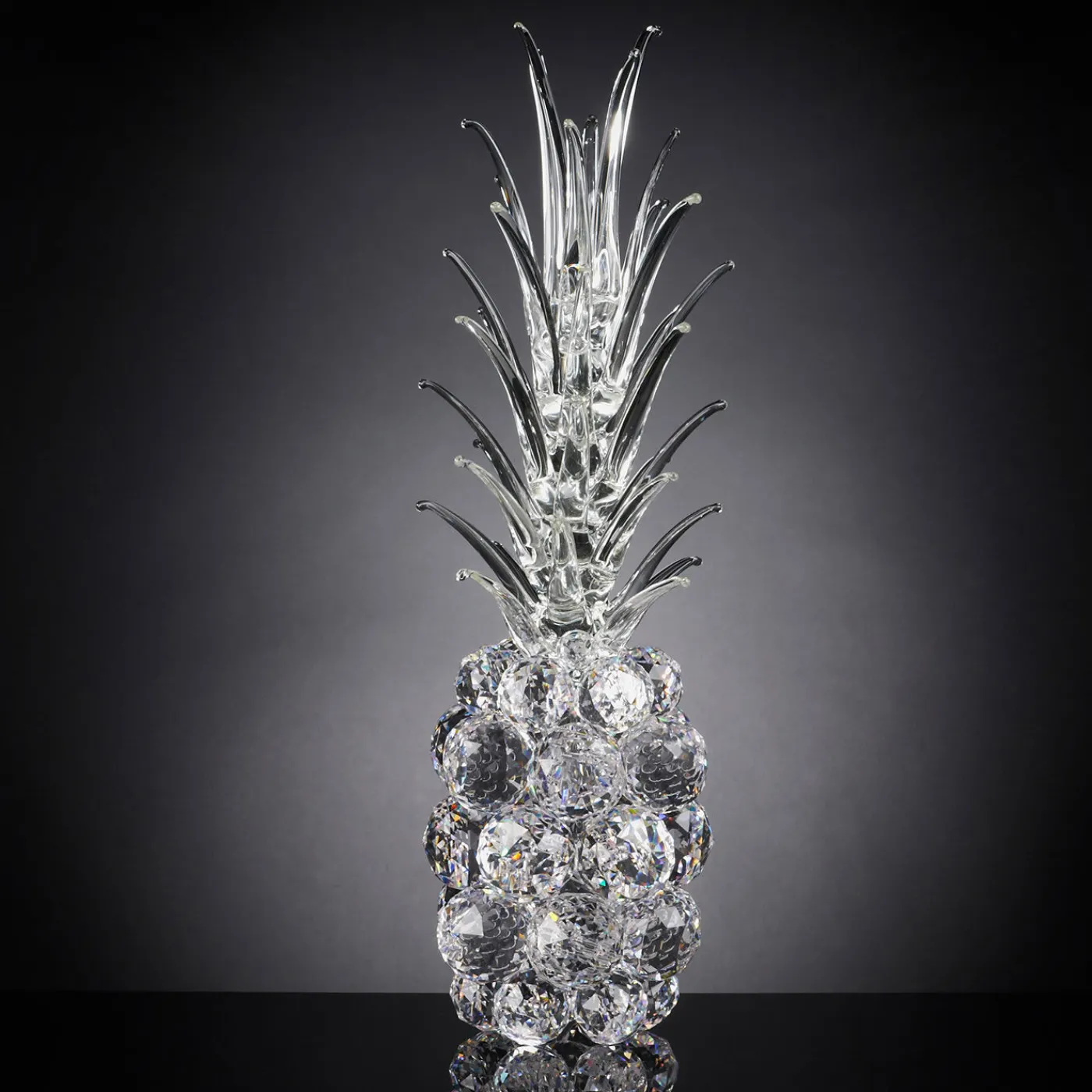 Una straordinaria dimostrazione di maestria artigianale, questa affascinante scultura a forma di ananas sarà un’aggiunta vivace e apprezzata a un interno moderno. Interamente realizzata a mano in cristallo pregiato da esperti artigiani, sfoggia un accattivante gioco di tonalità scintillanti e trasparenti.