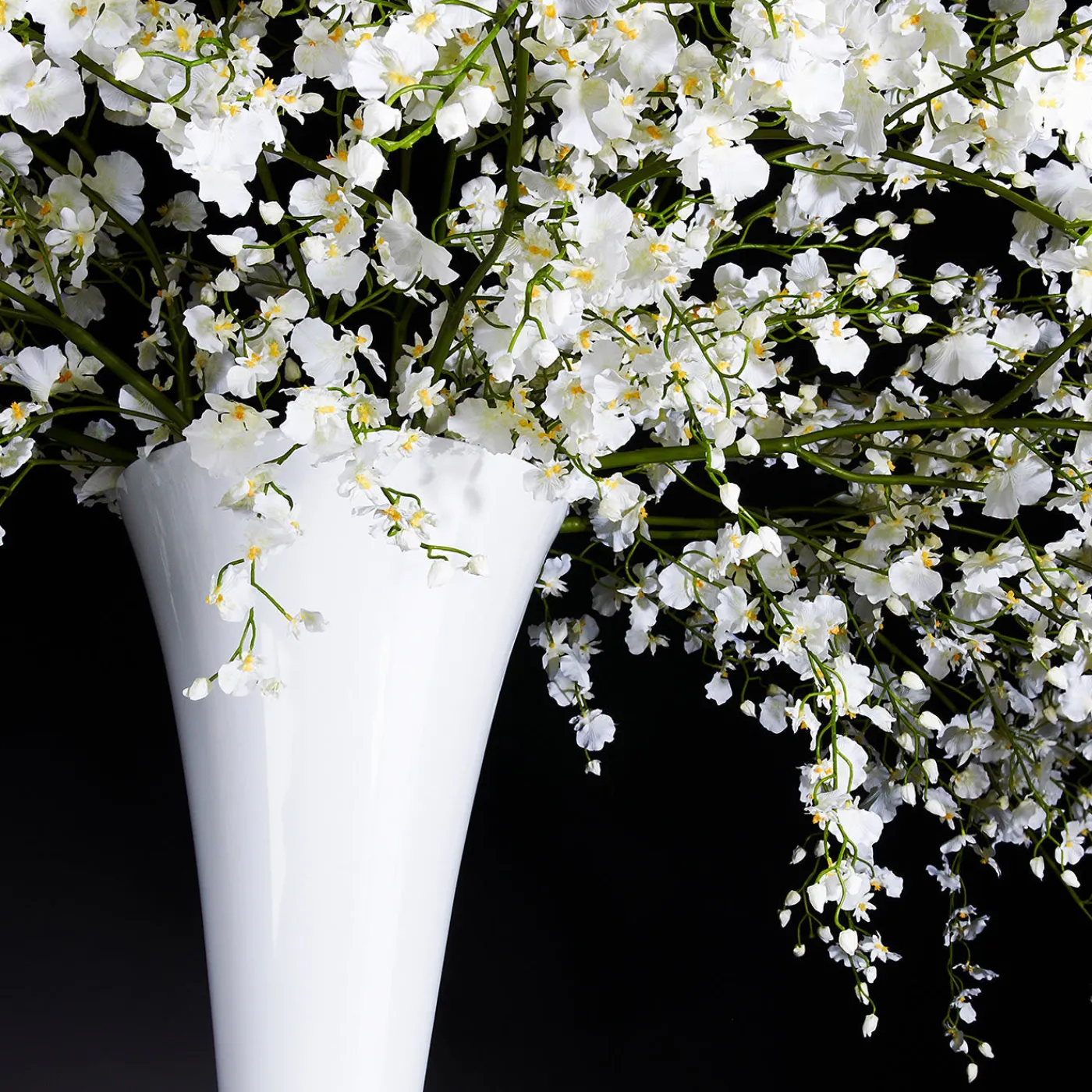 Un elegante vaso di vetro dalla silhouette allungata e scanalata conferisce un tocco vintage a questa sofisticata composizione floreale che riempirà la vostra casa con la bellezza della primavera per tutto l’anno. Caratterizzato da una cascata di orchidee oncidium bianche finte di alta qualità, questo vaso può essere esposto sia all’interno che all’esterno per accentuare qualsiasi serata formale con il suo stile esclusivo.