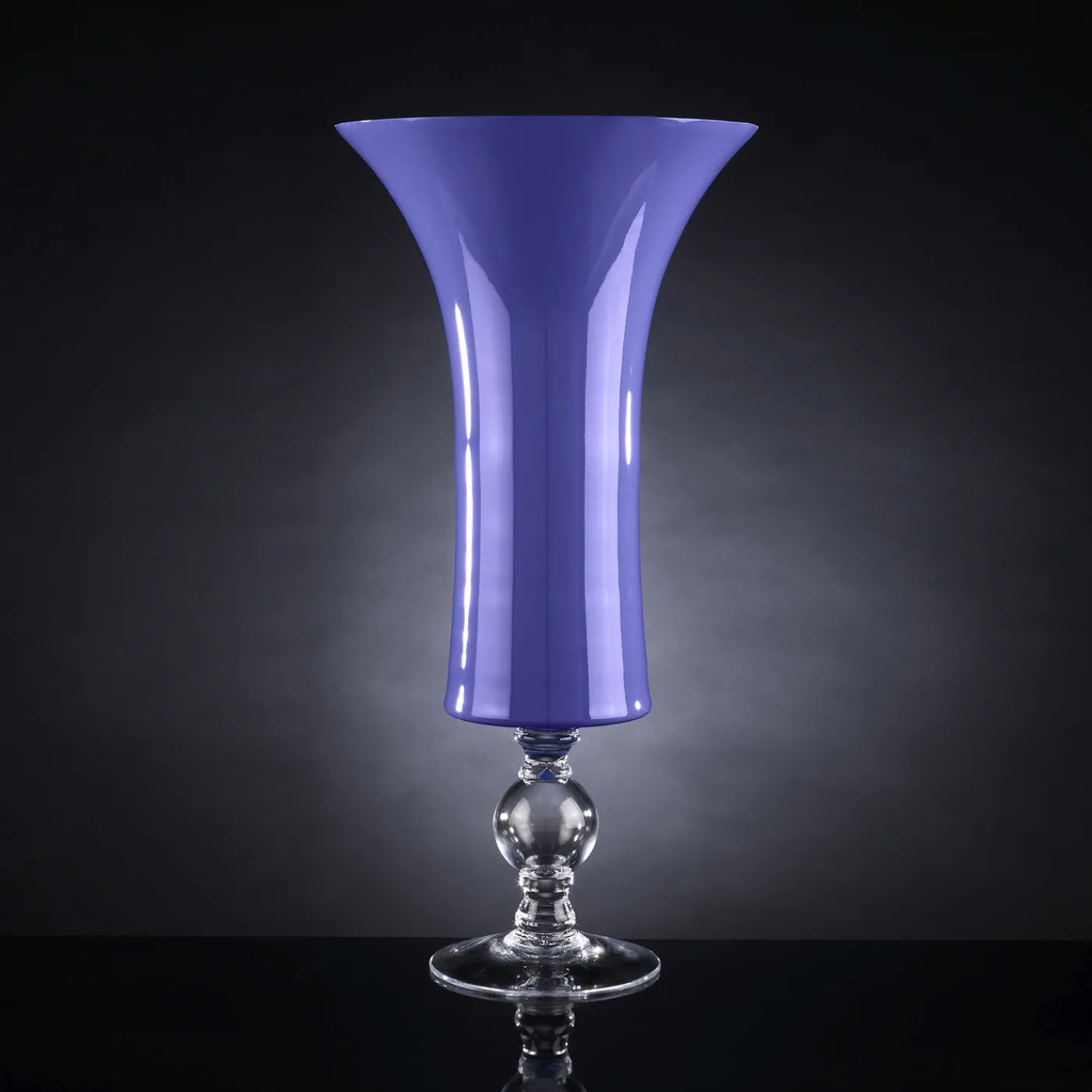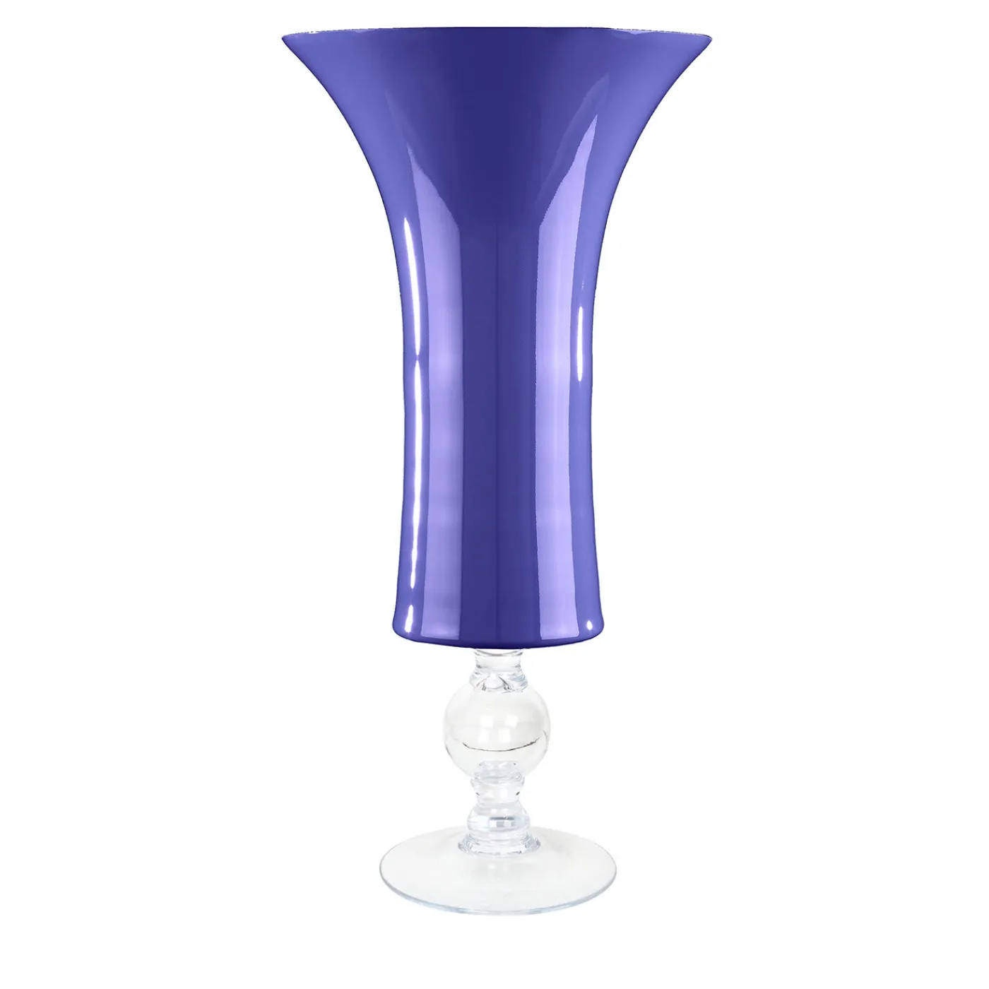 Aggiungendo un vivace tocco di colore a un arredamento moderno o classico, questo elegante vaso può essere abbinato ad altri vasi Laura Chalice per creare splendide combinazioni di vari oggetti d’arte. Parte di una serie realizzata a mano da maestri vetrai, presenta una base circolare in vetro trasparente e uno stelo corto e raffinato, che sostiene una capiente coppa cilindrica svasata alla sommità.