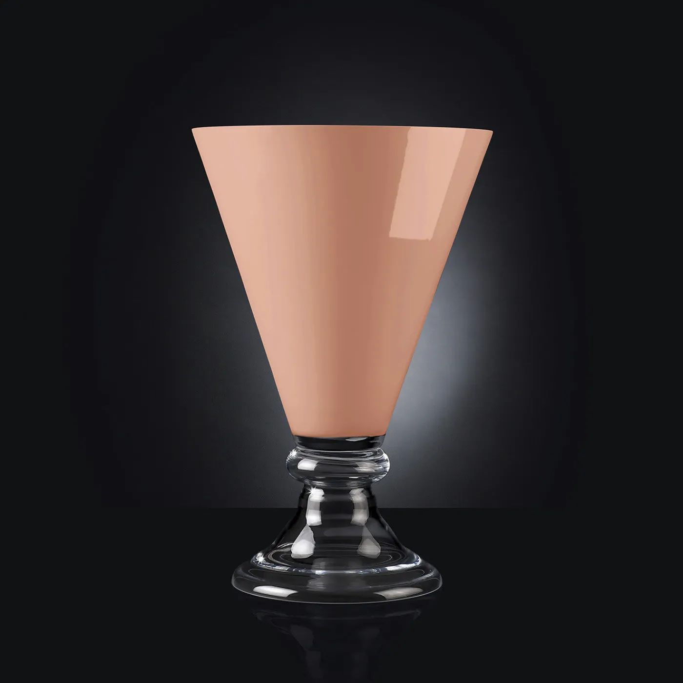Questo vaso squisitamente artigianale vanta una silhouette pulita composta da una base leggermente svasata in vetro trasparente e da una silhouette svasata in vetro arancione cantalupo. Un pezzo sorprendente dal forte valore geometrico, che aggiungerĂ un accento vivace e affascinante a una tavola moderna o classica.