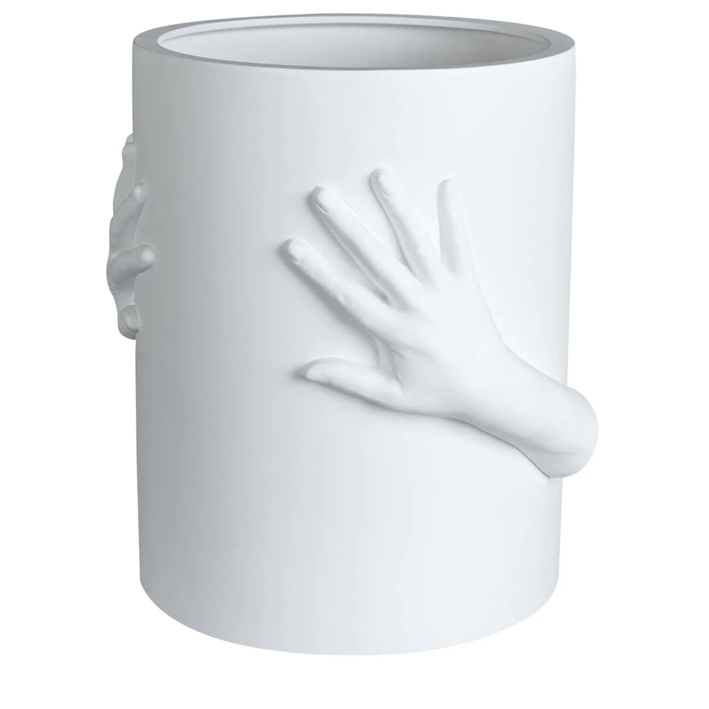 Le mani dell’iconica scultura David di Michelangelo sono qui riprodotte abbracciando un semplice cilindro di ceramica proposto in una luminosa finitura bianca opaca. Questo vaso decorativo, che emana un fascino eclettico, è stato accuratamente modellato e dettagliato da maestri artigiani per celebrare i capolavori del Rinascimento italiano reinterpretandone i dettagli in un design fresco e contemporaneo.