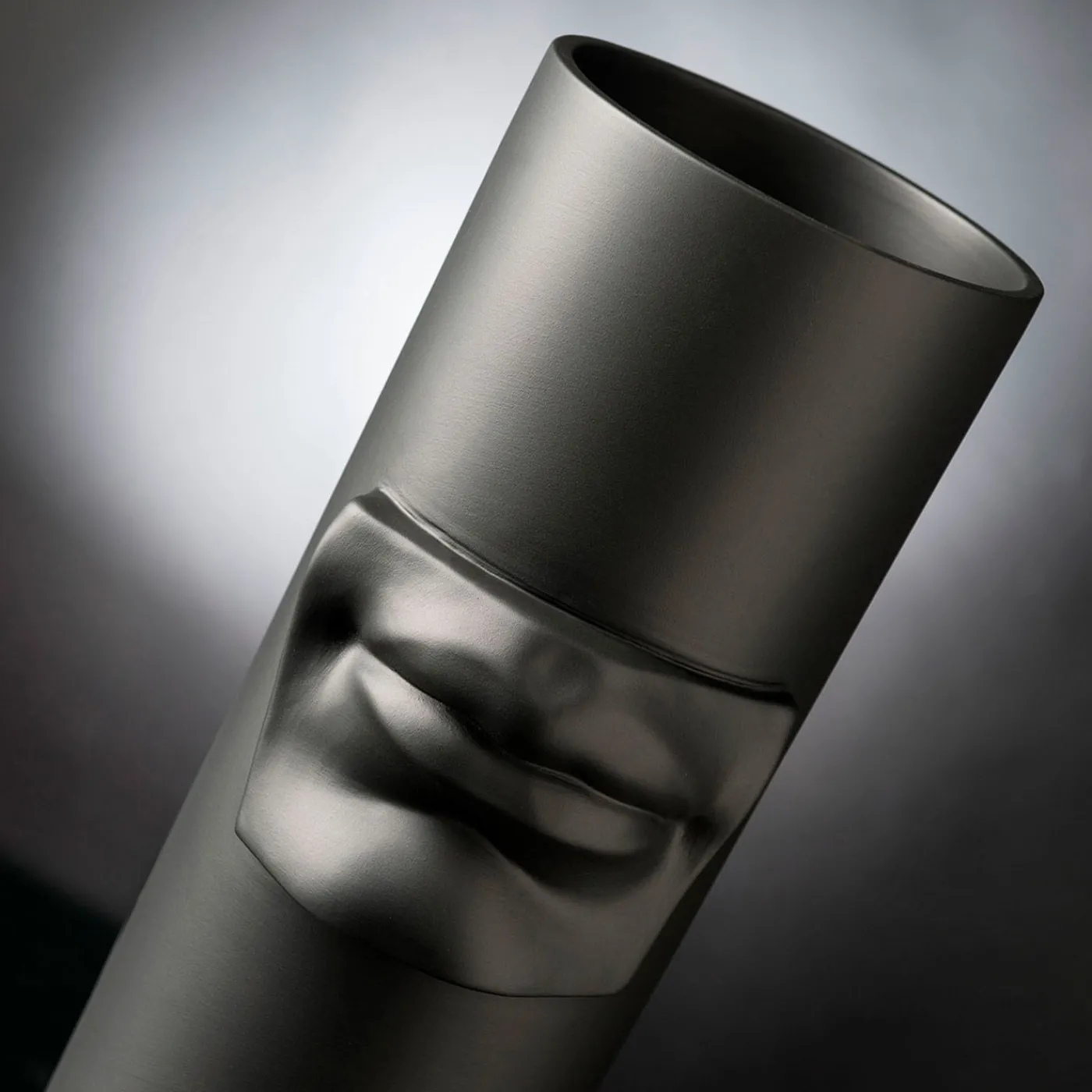 Le labbra della celebre scultura “David” dell’artista rinascimentale italiano Michelangelo sono abilmente riprodotte nell’inserto che decora questo vaso in ceramica nera lavorato a mano. Straordinario nei dettagli ma semplice nella forma, questo pezzo sarà un accento elegante in ambienti privati o contract contemporanei.