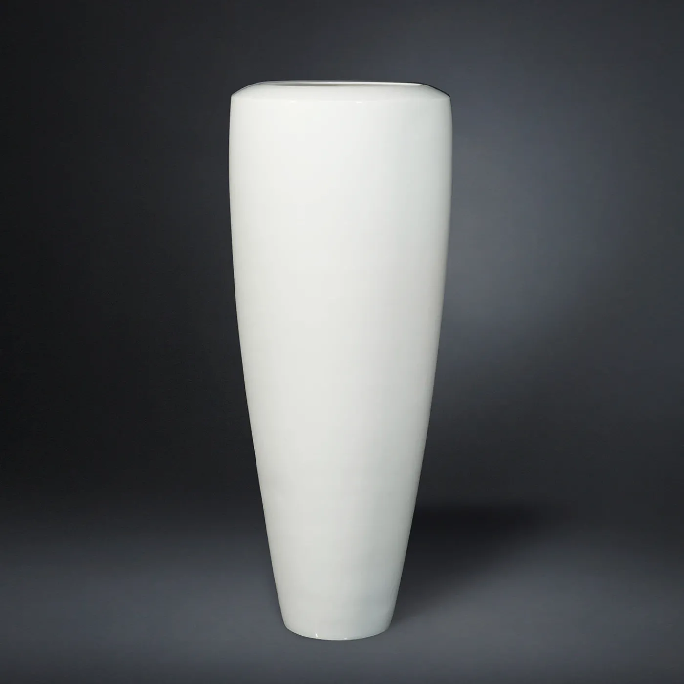 Questo vaso alto in ceramica si distingue per la sua silhouette affusolata che ricorda l’arma da fuoco dell’artiglieria che dà il nome alla collezione. Disponibile in diverse finiture, questa versione vanta una superficie liscia di colore bianco brillante e un’ampia bocca adatta a disporre rami alti e fronde a cascata.