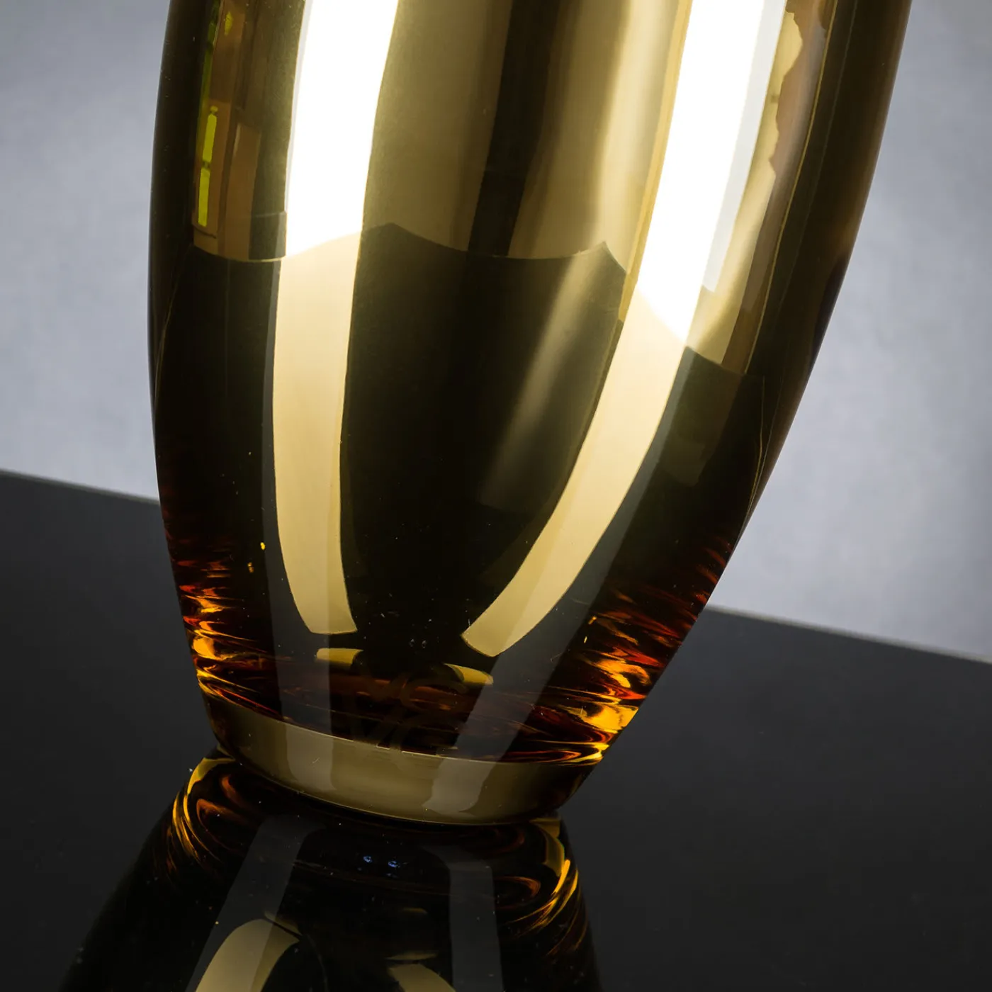 Superba dimostrazione di maestria artigianale, questo splendido vaso in vetro sfoggia una scintillante tonalità dorata che gli conferisce una qualità singolare e innovativa. Utilizzato come pezzo funzionale o come oggetto d’arte decorativo, infonderà una raffinatezza chic in un interno moderno.