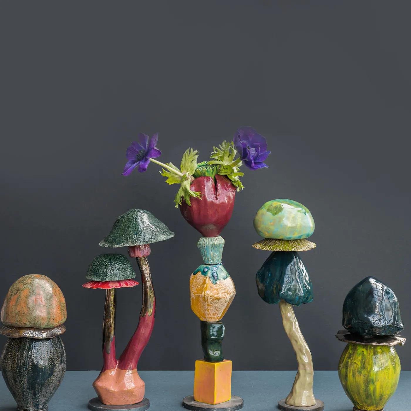 Scultura in ceramica ispirata al mondo naturale dei funghi, realizzata con argille e tecniche diverse, ogni singolo pezzo è lavorato e dipinto a mano, rendendolo unico. Ha una base in ferro arrotondata per garantire un perfetto equilibrio. I funghi sono icone pop: c’è chi li colleziona, chi ama mangiarli, chi si cura grazie al loro potere e tutti hanno in qualche modo un ricordo d’infanzia legato ai “funghi”.
