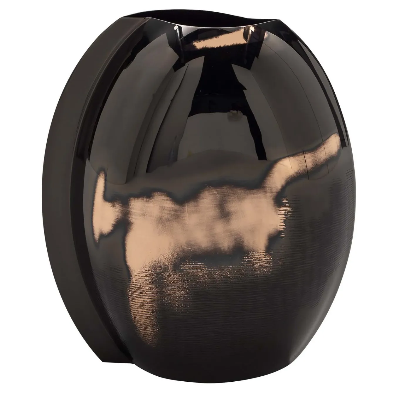 Esempio di raffinato artigianato, questo vaso è realizzato in titanio e rame con una finitura lucida che aggiunge un fascino luminoso ed elegante a questo pezzo unico di arredamento. Parte di una serie numerata, questo vaso è uno splendido regalo in ogni occasione.