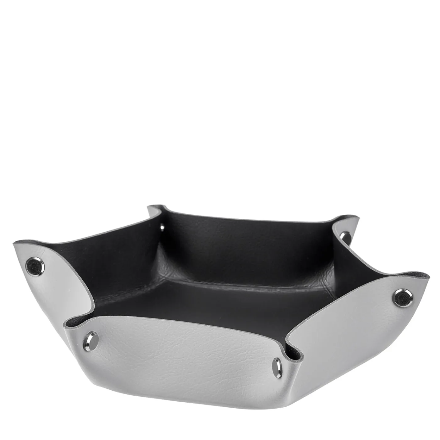 Un vide poche pratico e funzionale, disegnato da Ekaterina Borovkova, con un design moderno in pelle grigia e nera. Ideale per organizzare piccoli oggetti come chiavi, monete e graffette, aiuta a mantenere la scrivania libera dal disordine e gli essenziali sempre a portata di mano. La forma essenziale e i dettagli con bottoni a pressione aggiungono un tocco discreto ma elegante, perfetto sia per ambienti di lavoro che per spazi domestici.