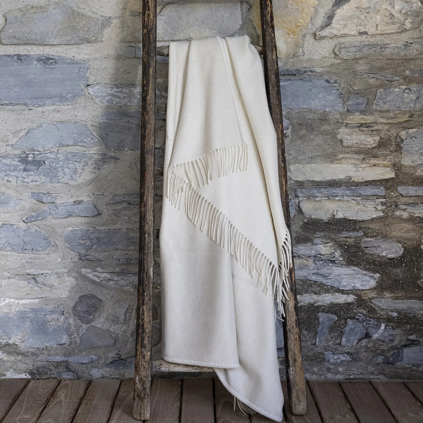 Luminosa e raffinata, questa piccola coperta è ottenuta da pregiati filati di cachemire, proposti in un versatile design double-face che completerà con eleganza qualsiasi divano o poltrona moderna. Le impunture e le frange sono cucite a mano per rivelare la qualità sartoriale e il carattere moderno del pezzo. I filati di cashmere utilizzati sono selezionati per la loro impareggiabile morbidezza e leggerezza.