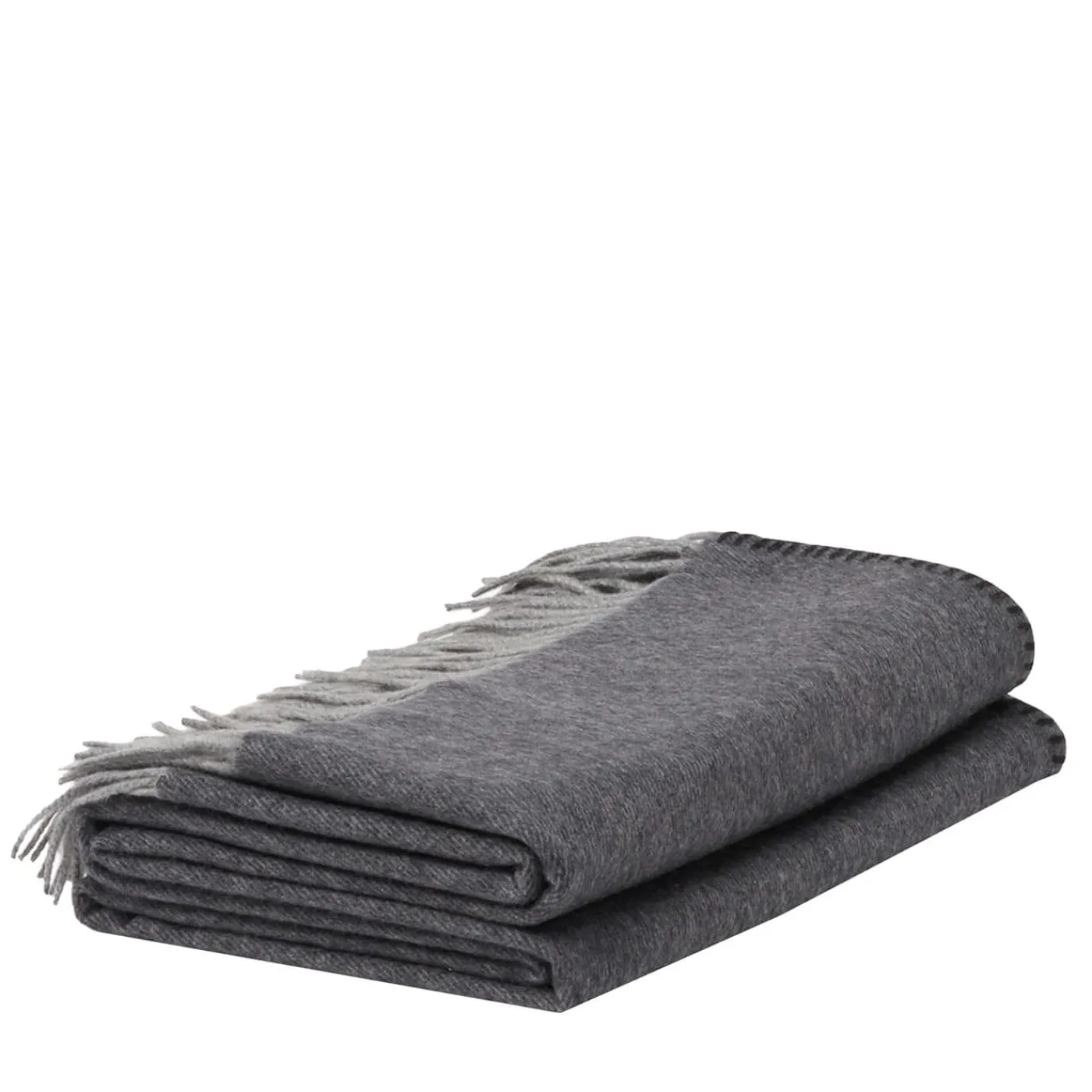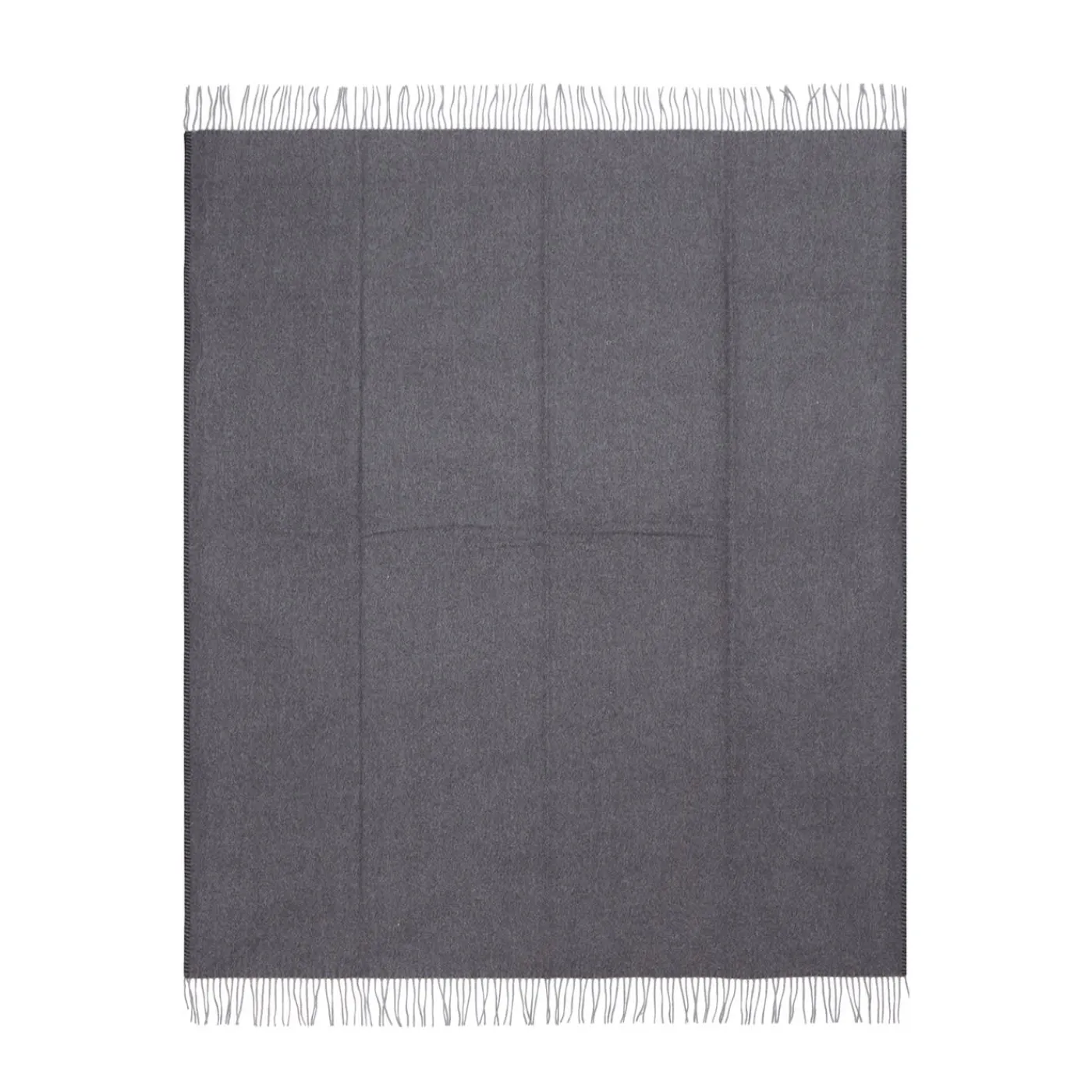 Dettagli a frange e cuciture in contrasto di colore lungo i bordi ravvivano l’estetica tranquilla di questa piccola coperta. Realizzata in pregiato cashmere, abbina due tonalità di colore per un doppio uso intelligente che ne sottolinea la versatilità. L’uso di un filato pregiato, morbido e leggero assicura un effetto di vera e propria coccola quando ci si avvolge, sia per un’accogliente pausa tè che per una sessione di lettura.