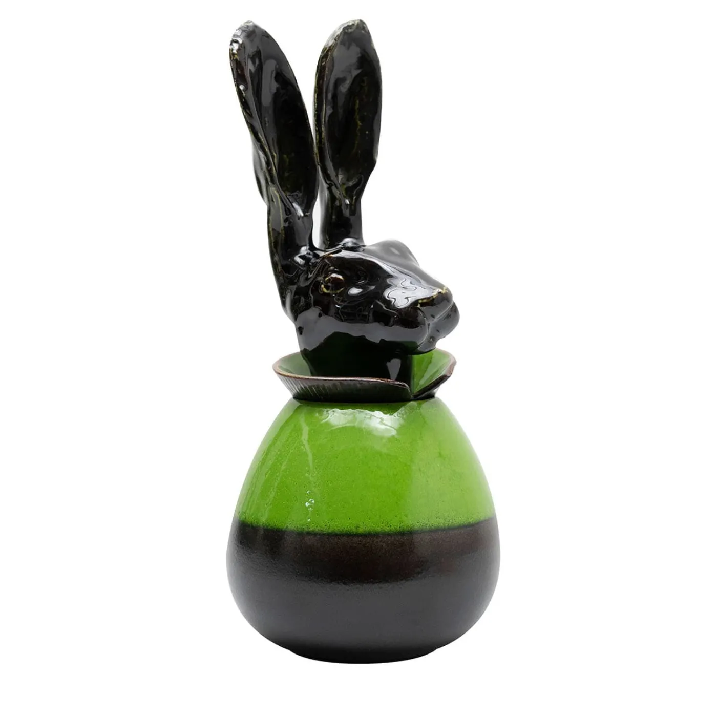 Questo vaso si ispira direttamente ai vasi canopi egizi; è una reinterpretazione ironica e contemporanea di un oggetto ancestrale, nume tutelare della quiete domestica. Il coniglio è infatti un simbolo di abbondanza, prosperità e longevità e più semplicemente un bellissimo animale. Realizzata a mano e smaltata con ossidi e cristalli, l’opera diventa un oggetto prezioso e scultoreo.