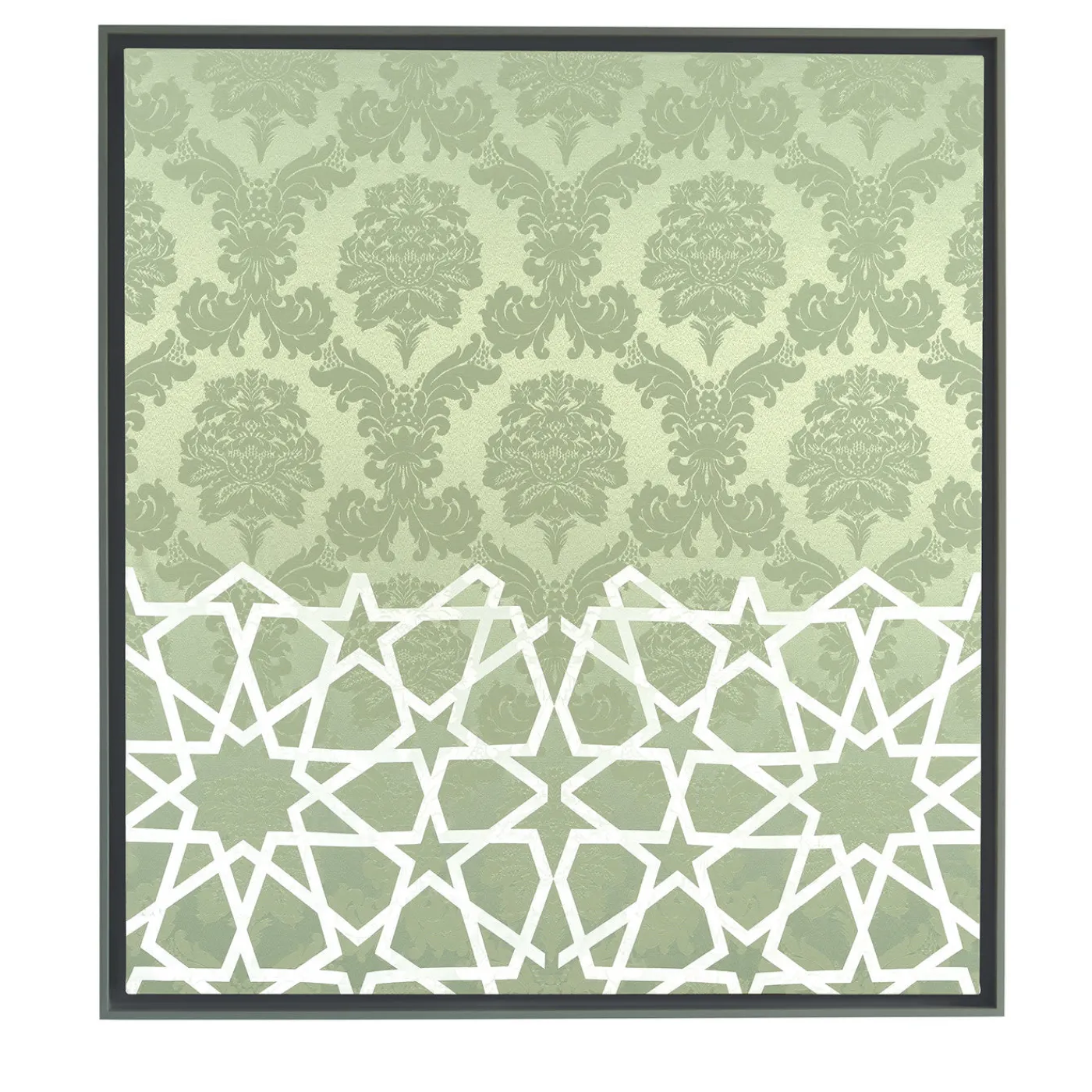Impeccabile pezzo d’arredamento di Amelia Corvino, questo pannello è realizzato in un raffinato damasco verde menta proveniente dalle più prestigiose tessiture veneziane. Riempito internamente con un pregiato tessuto di cotone, su richiesta è disponibile una cornice in legno. Ricordando la superba combinazione melodica nota in musica come contrappunto, questo pezzo funge da ponte artistico tra Oriente e Occidente, combinando il tipico motivo damascato nella parte superiore con un motivo geometrico islamico nella parte inferiore.