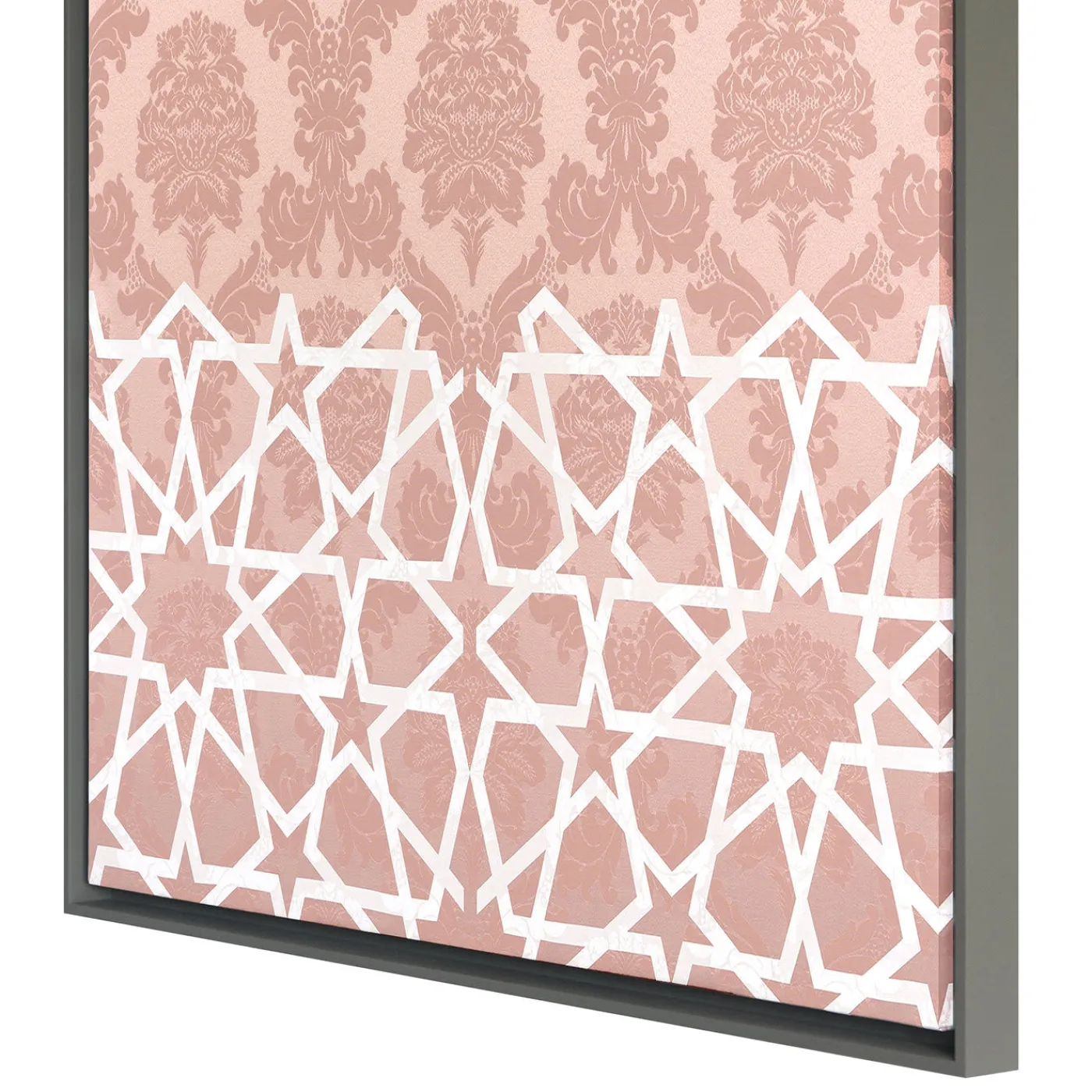 Un’armoniosa interazione tra arte e artigianato contraddistingue questo splendido pannello decorativo di Amelia Corvino. Realizzato nelle più prestigiose botteghe di tessitura veneziane, è realizzato in damasco rosa e imbottito internamente con cotone pregiato. Proprio come un contrappunto musicale, il pezzo vanta un motivo unico che combina il tipico motivo damascato occidentale con un motivo geometrico orientale appartenente all’arte islamica. La cornice in legno è disponibile su richiesta.