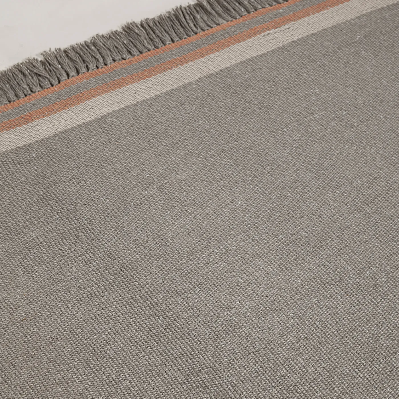 Catturando l’essenza dei tessuti vintage, Coco è caratterizzato da una trama piatta con un delicato bordo a righe corallo e tortora. I toni caldi e terrosi conferiscono un tocco accogliente e raffinato agli spazi interni ed esterni, mentre la composizione robusta garantisce una lunga durata. Combinando estetica e praticità, trasforma qualsiasi ambiente in un rifugio invitante, offrendo un fascino senza tempo che affonda le sue radici nella tradizione artigianale. Adatto sia per esterni che per interni.